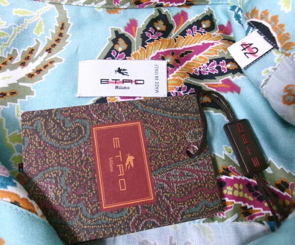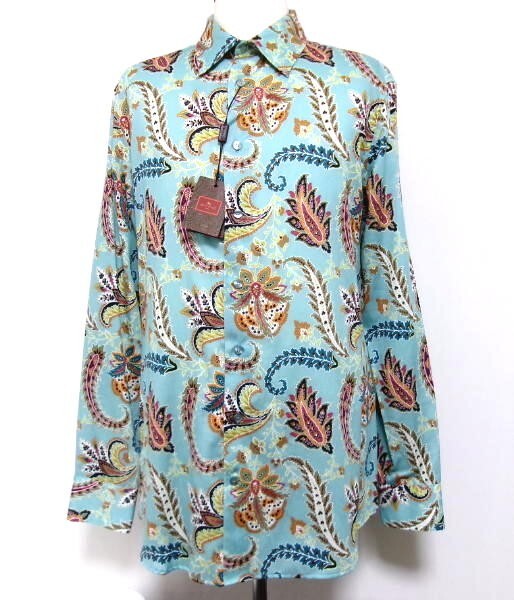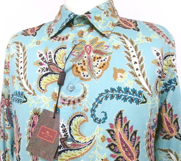 新品★ETRO エトロ★ペイズリープリント コットン 長袖シャツ★サイズ42 イタリア製 ブルー