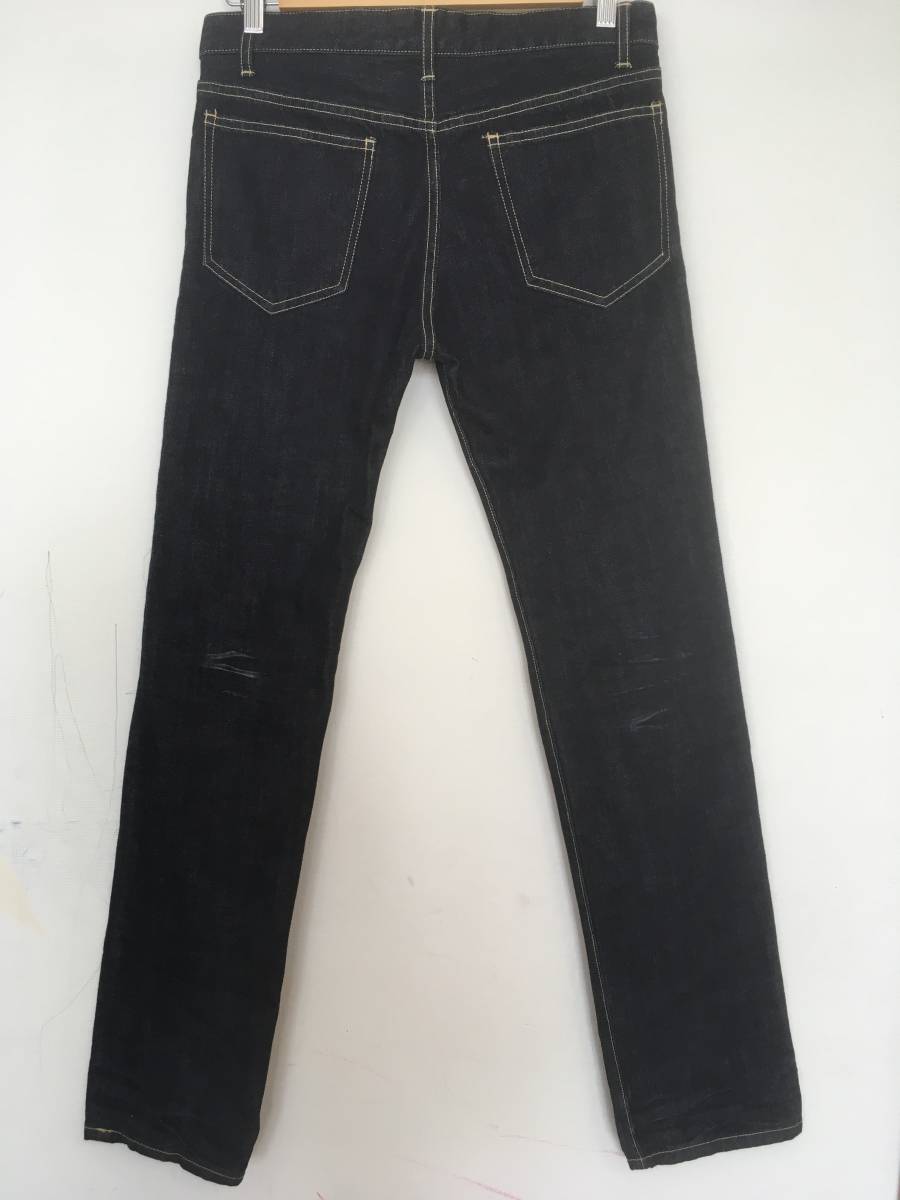 商品名: デニムパンツ サイズ:表記1 平置き:W40,5cm(×2) L25cm(股上) 82cm(股下) サイド全長105cm。 裾幅18,5cm(素人採寸の為多少の誤差はご了承下さい) カラー:インディゴ 状態:MADE IN JAPAN。コットン100%。ZIPフライ。ポケット×5。膝裏にアタリ加工(画像5)。裾上に皺加工(画像6)。目立ったダメージ等無く良い程度だと思います。 発送方法:レターパックプラス(配達記録付600円) ※古着になりますので神経質な方、ご理解の無い方の御入札はお控え下さい。送料、振込手数料は落札者様の御負担となります。ノークレーム、ノーリターンでお願い致します。