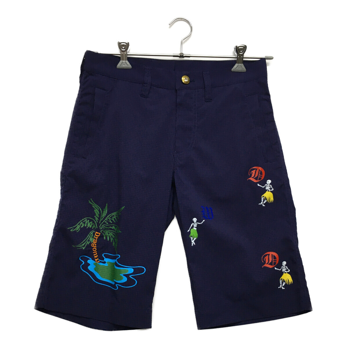 coco 中古【値下げ】 ダンスウィズドラゴン メンズ ハーフパンツ 1(S) 紺 サッカー生地 チェック柄 レターパックプラス発送可 90850