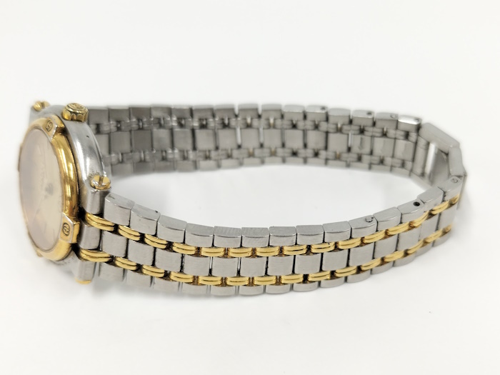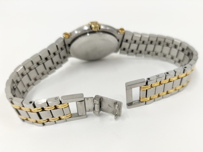 ◆商品情報 | ・サイズ:直径約 25(mm)【リューズ部分を除く】 ・腕周り:最大約 16(cm) ・素材/機能:SS/GP+ゴールド文字盤 ・ムーブメント:クオーツ |