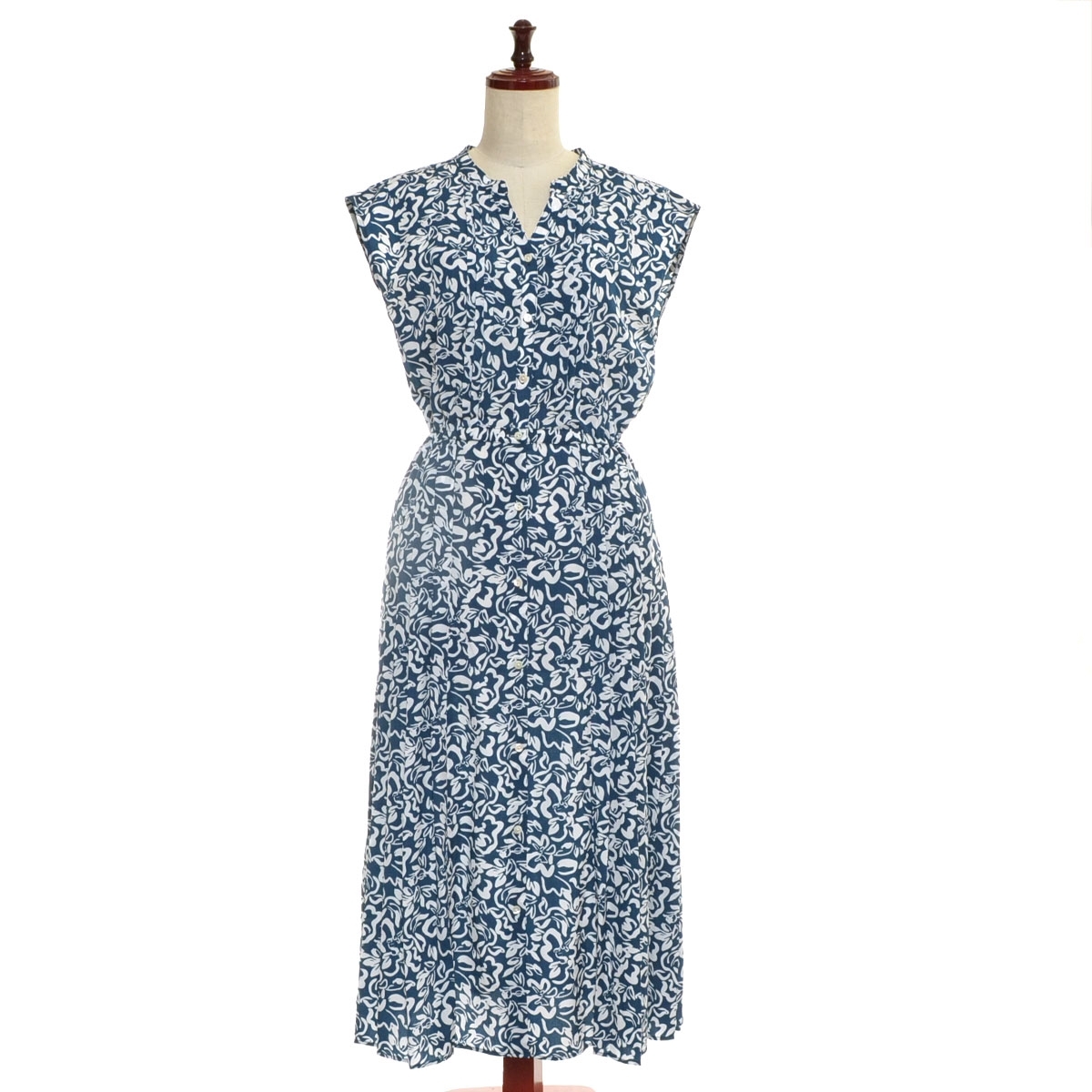 ■551993 SHIPS for women ●ロングワンピース 花柄 サイド プリーツ フレンチスリーブワンピース 314-52-2386 サイズS 25ss レディース