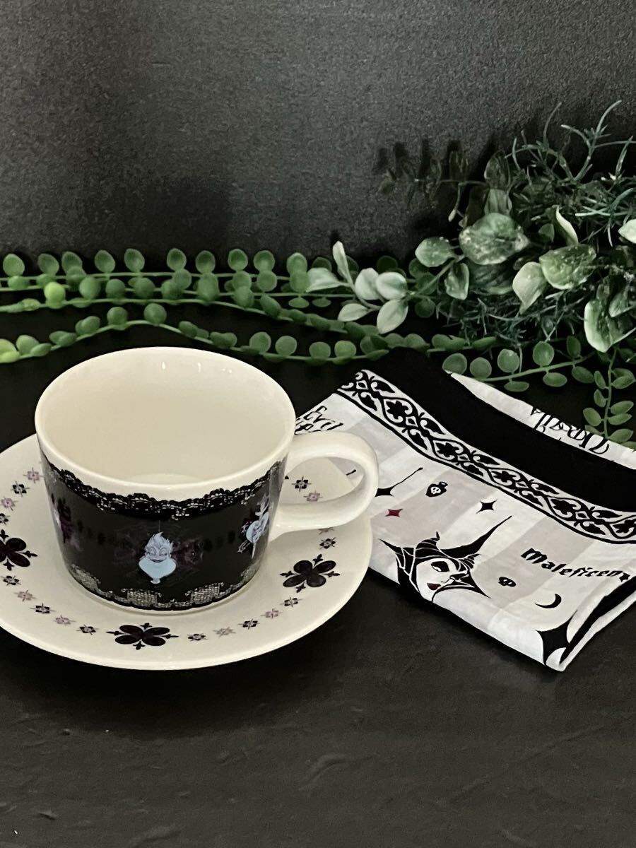 ・ディズニープリンセスヴィランズのカップ&ソーサーとハンカチ