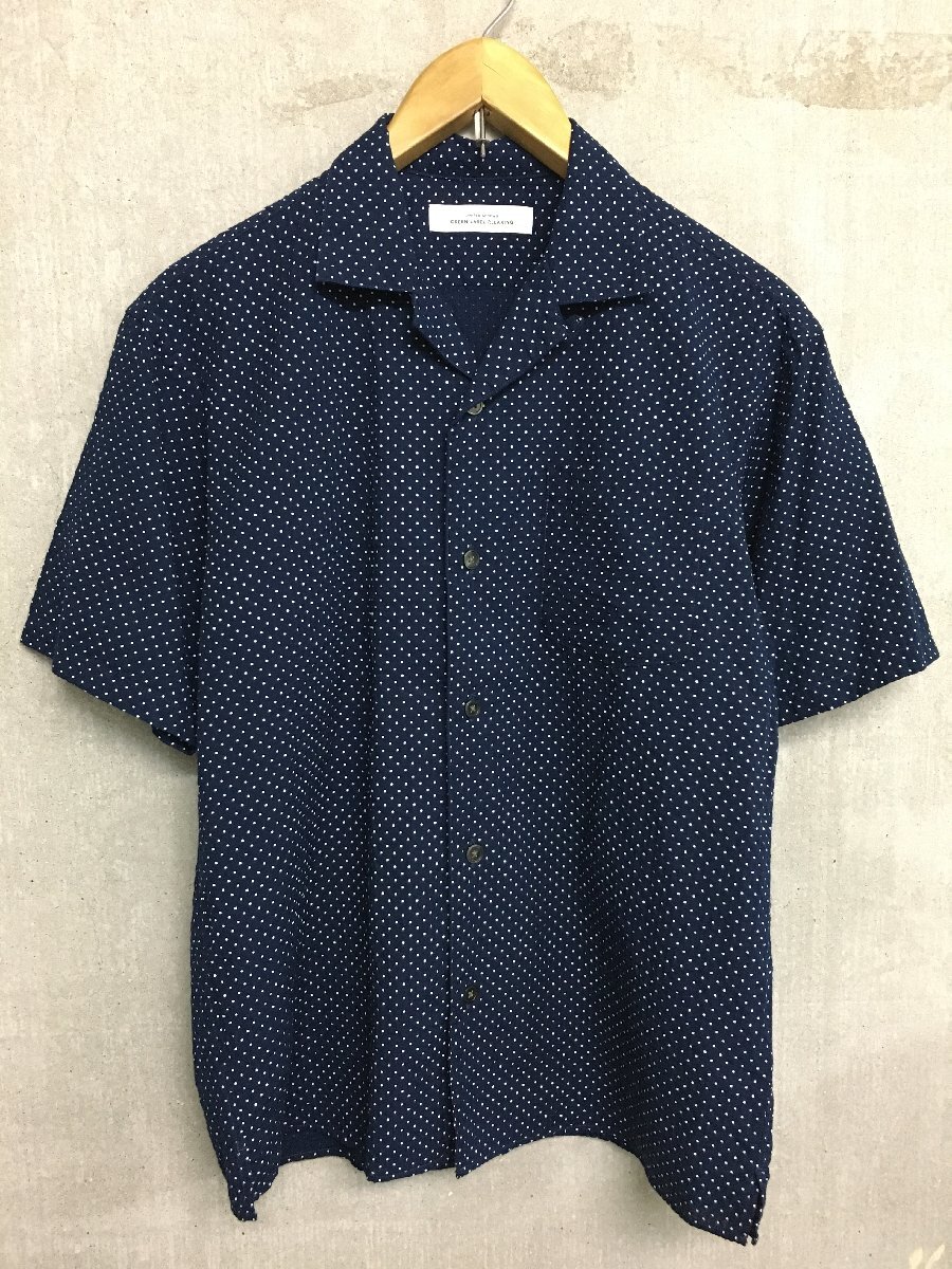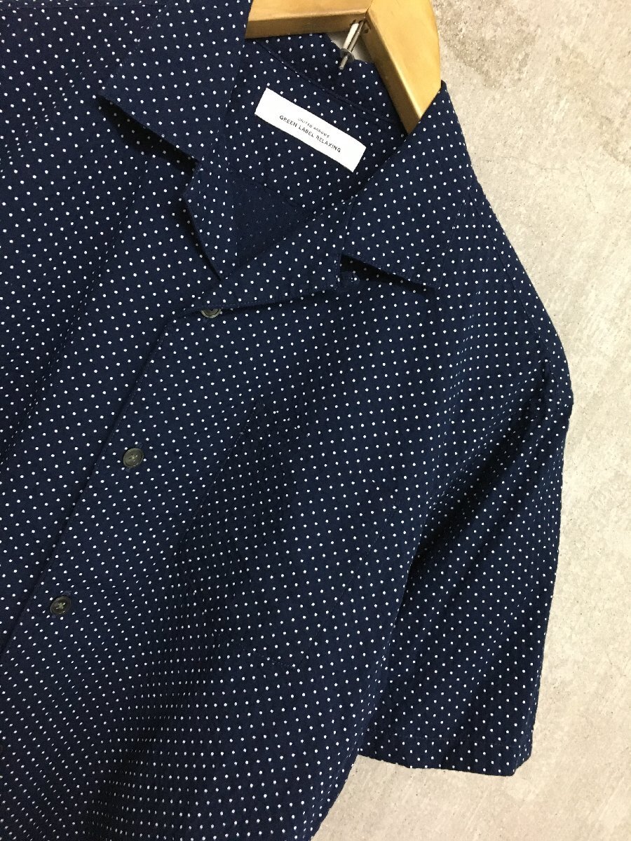 ◆UA GREEN LABEL アローズグリーンレーベル 清涼 オープンカラー DOT ドット 半袖 シャツ ネイビー サイズS 美