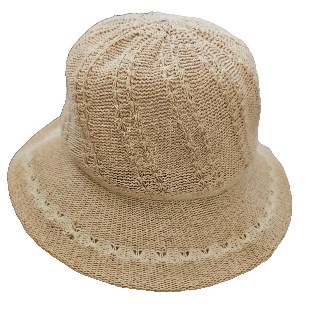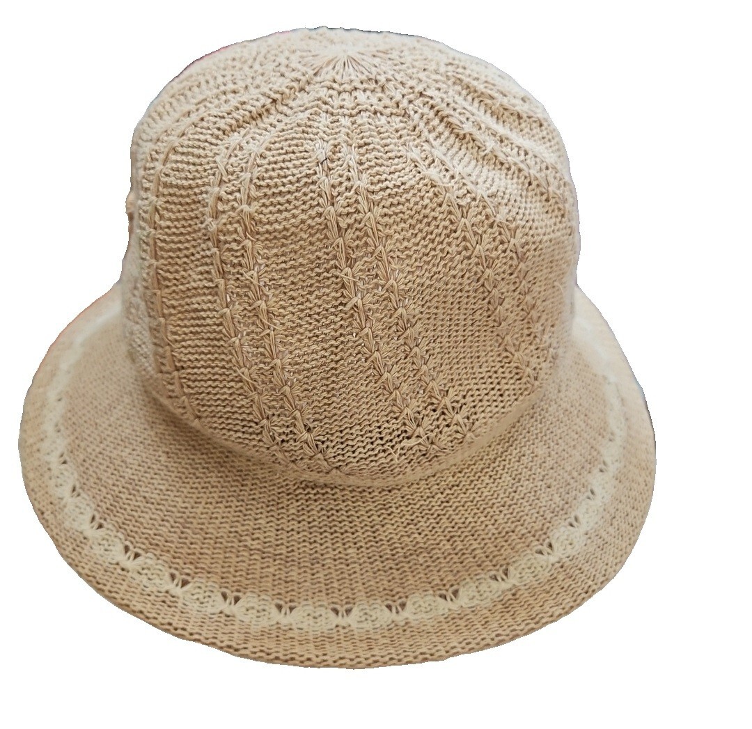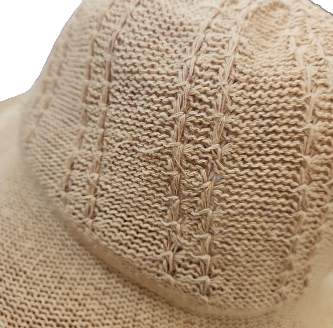 ベージュの編み物デザイン、フラワー装飾付きのカジュアルハット。