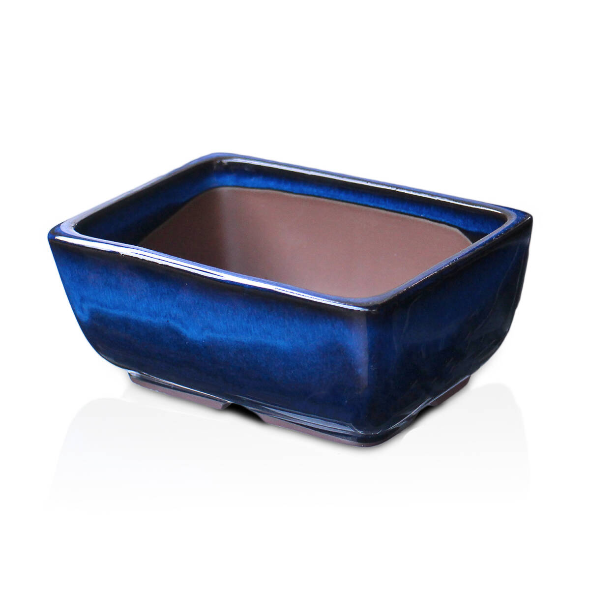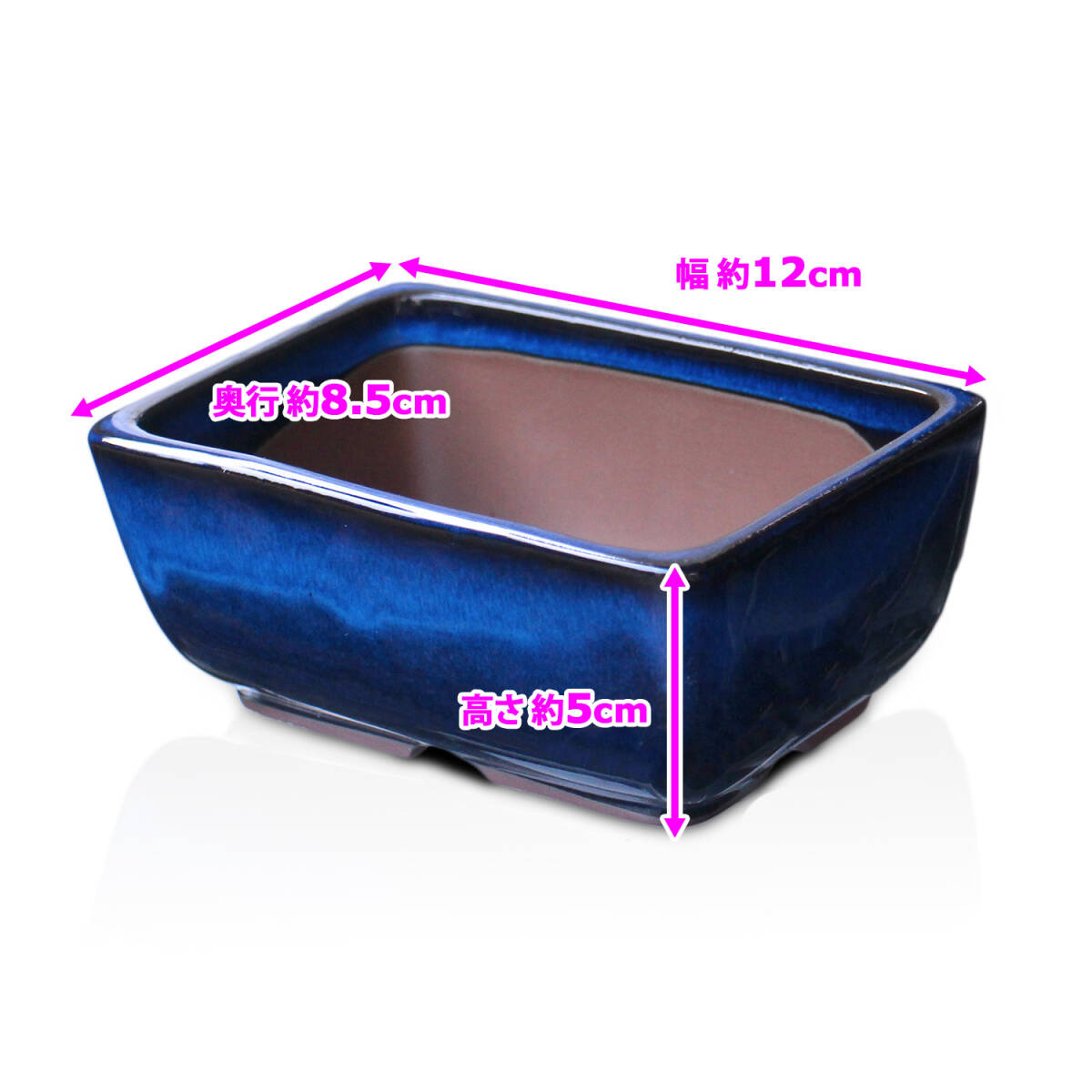 商品名 | 盆栽鉢 4号 ナデ角 青色 海鼠釉 四日市萬古焼 浅型 長方形 四角 陶器 雑木 小品 ミニ 小さい 植木鉢 苔 おしゃれ |