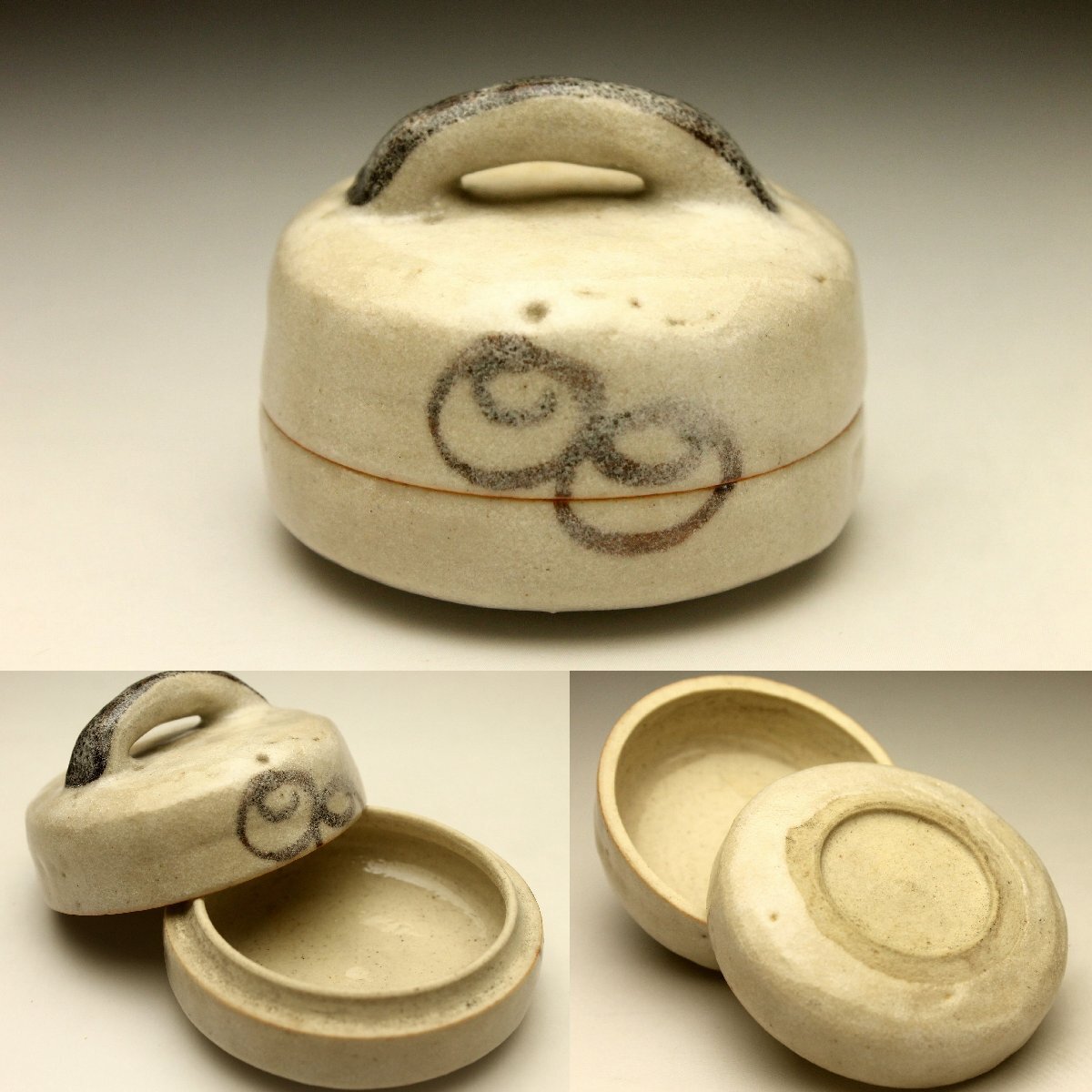 【余韻】 志野焼 壷々文 ハジキ香合★無傷美品 茶道具 無傷美品<同梱可>