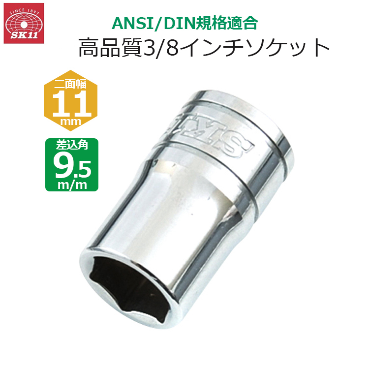 SK11 ソケット 差込角9.5m/m 二面幅11mm 3/8インチソケット S3-11