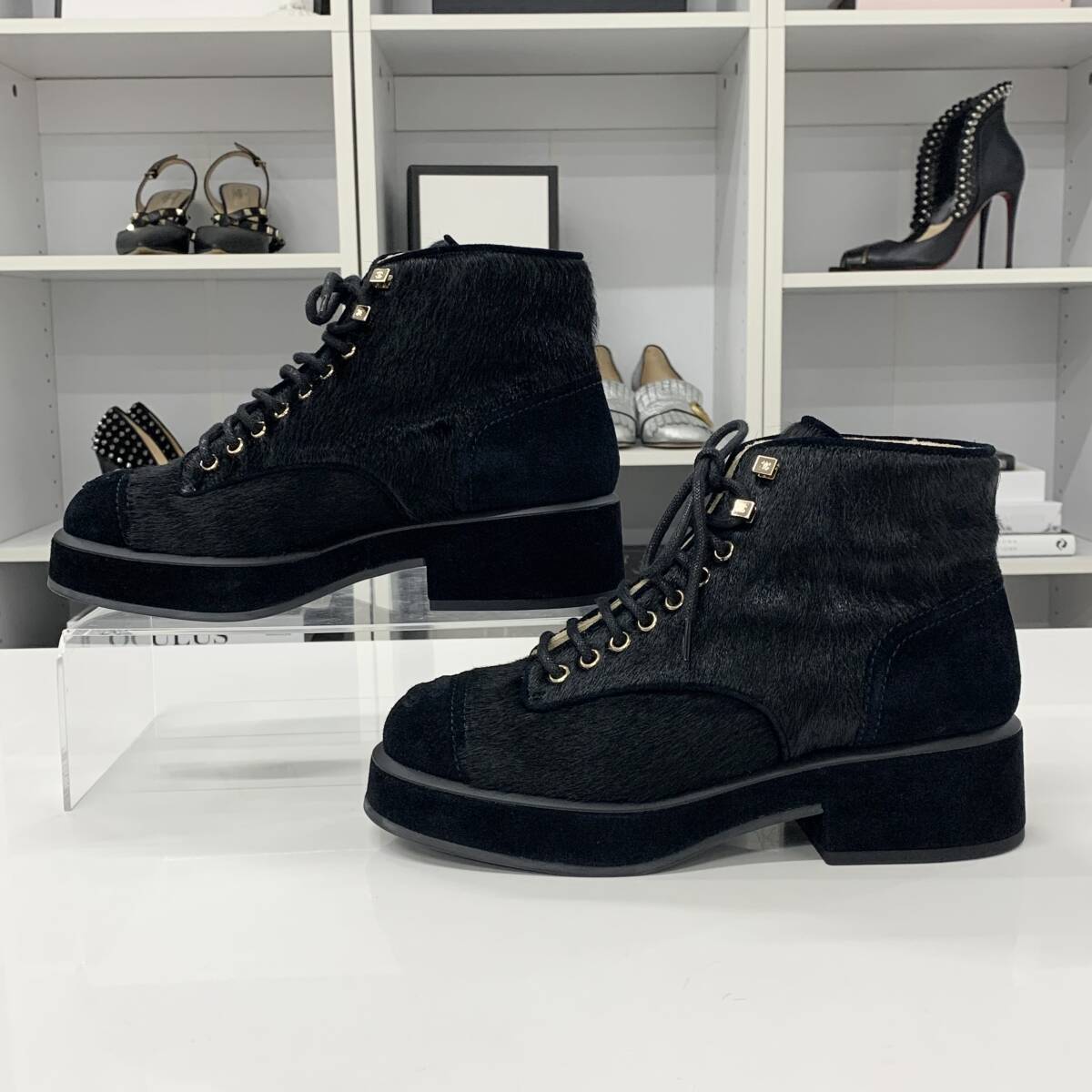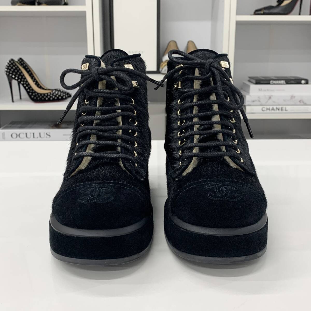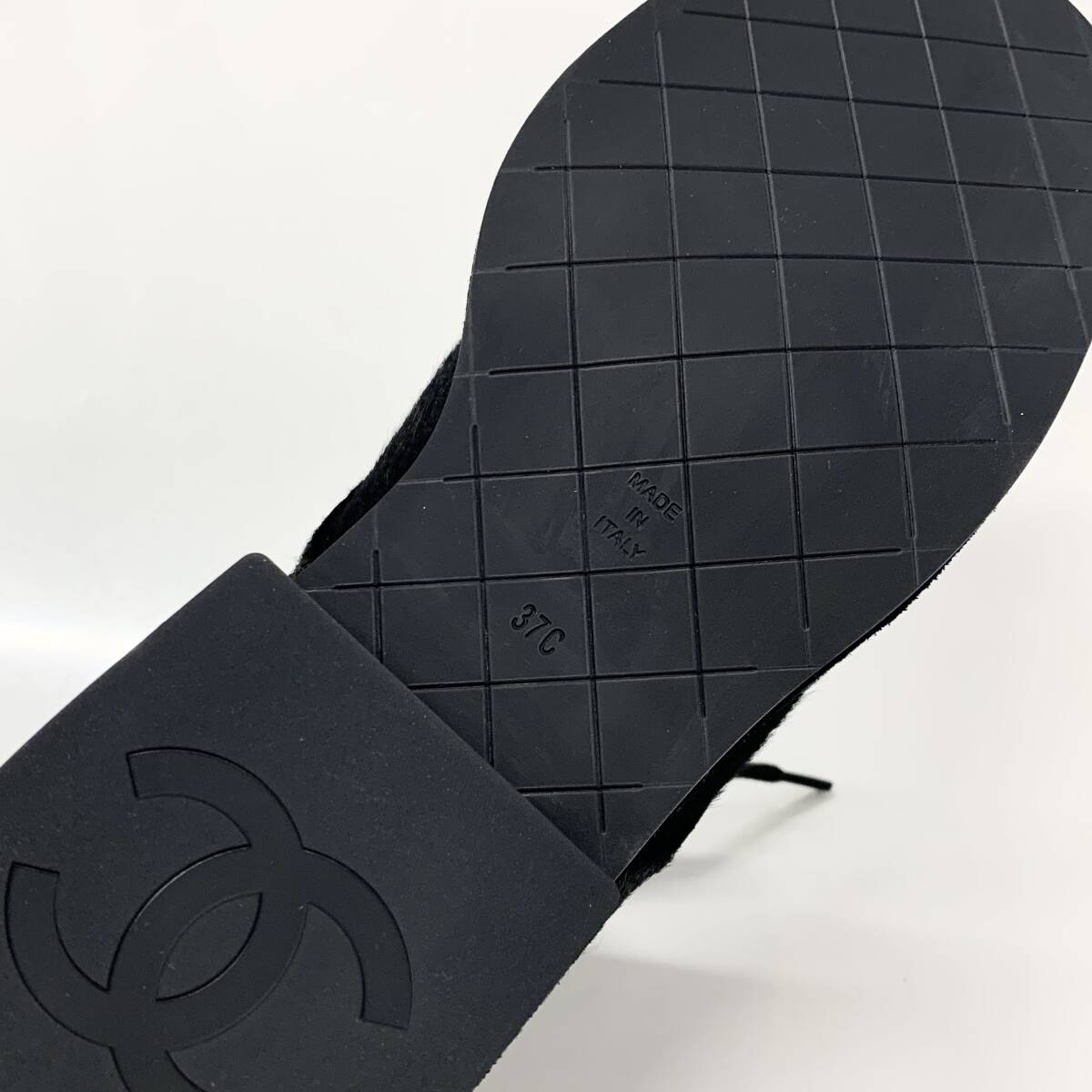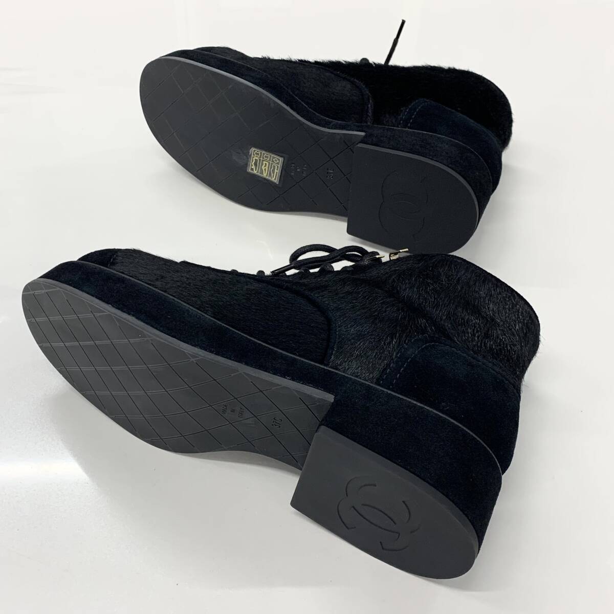 シャネル ココマーク ハラコ スエード ムートン ショートブーツ ブラック