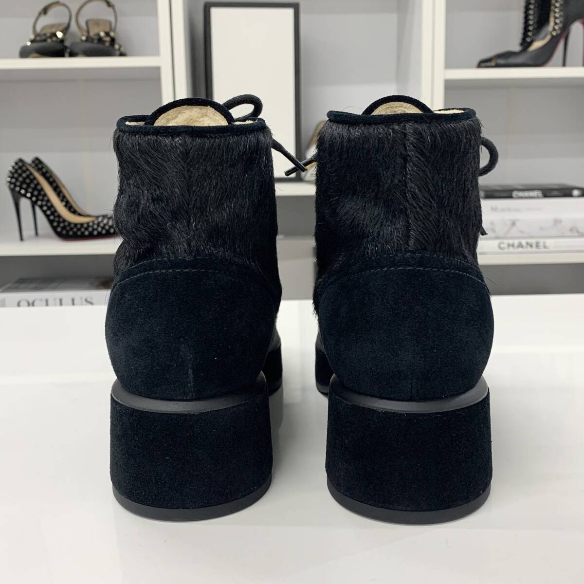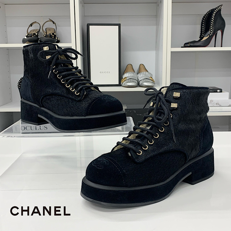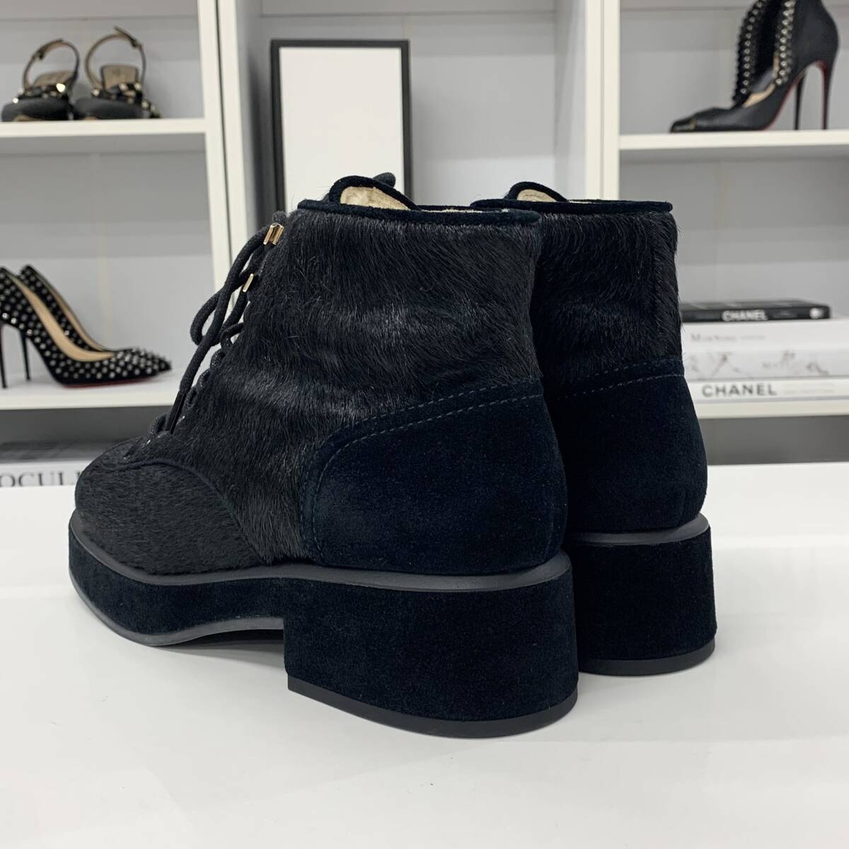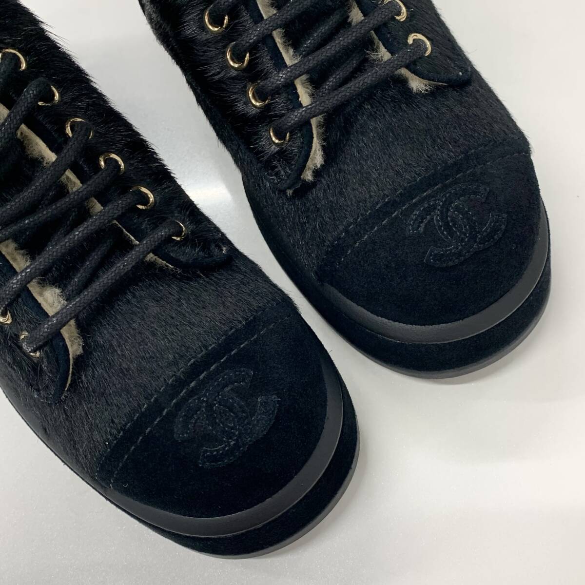 シャネル ココマーク ハラコ スエード ムートン ショートブーツ ブラック