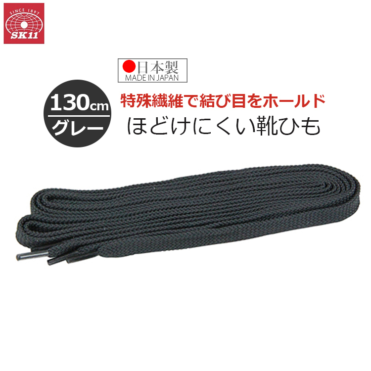 SK11 ほどけにくい 靴ひも 靴紐 130cm グレー 日本製 No-Slip130GRY