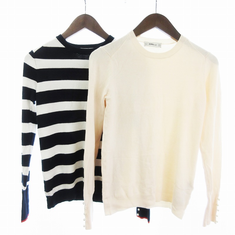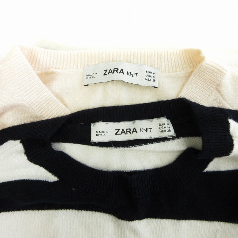 ザラ ZARA knit 2点 セット ニット セーター 長袖 ボーダー 無地 黒 白 ホワイト ブラック ピンク M レディース