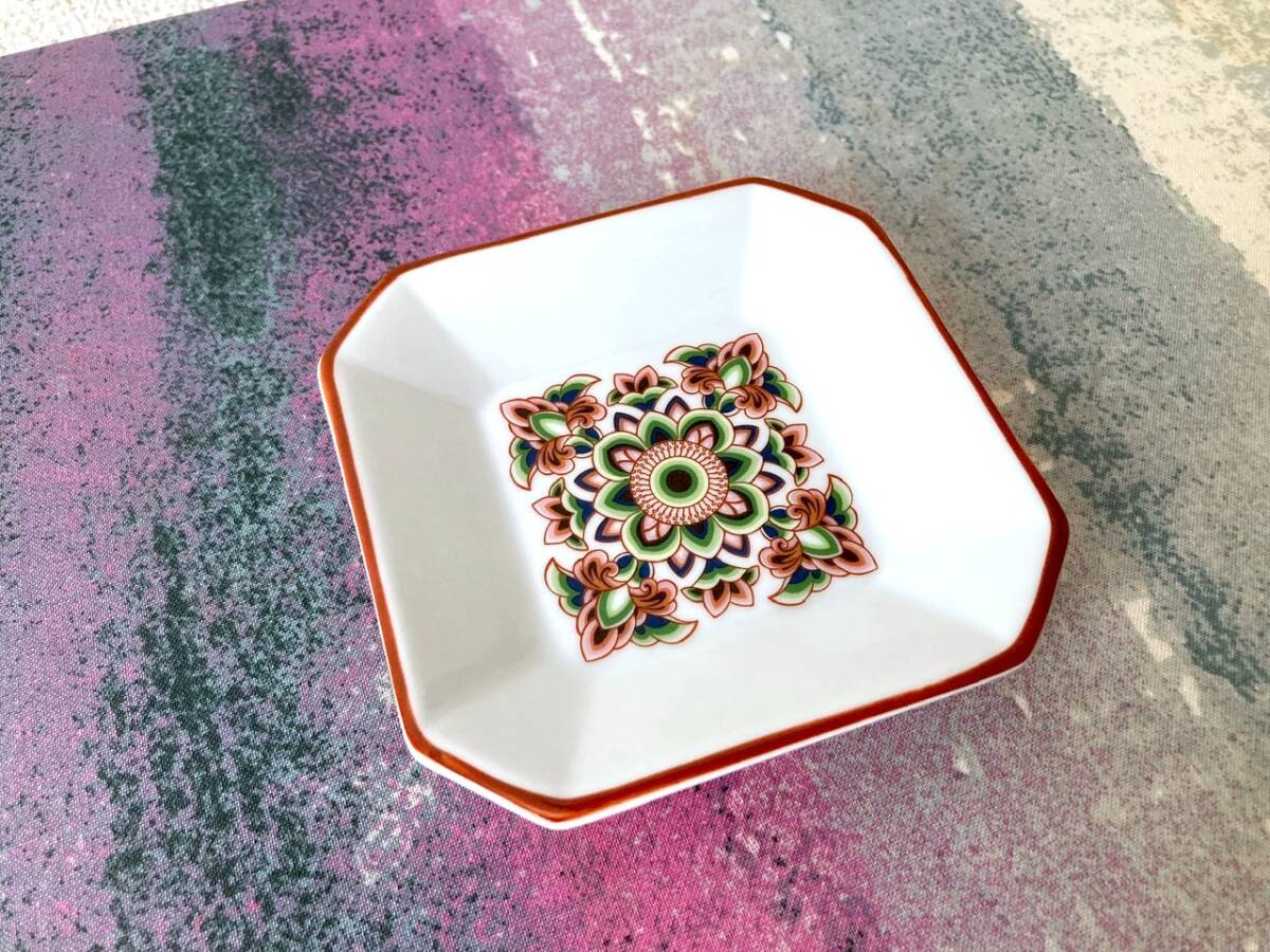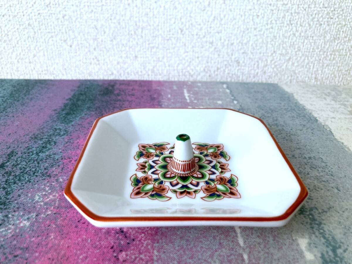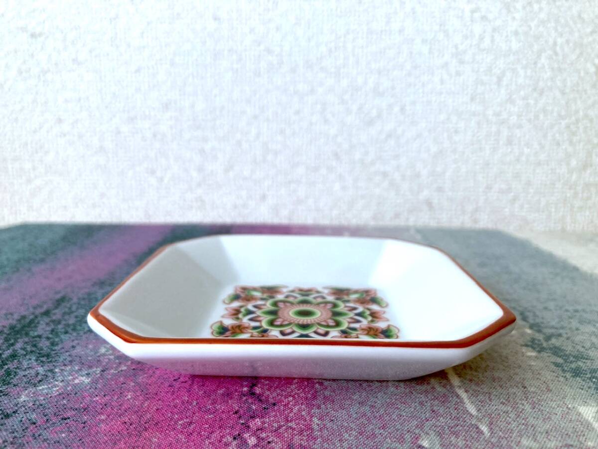 ★縁起物 奈良県 薬師寺 白鳳絵皿 金堂西塔 お香 線香立て 八角形 皿 小皿 金堂 天井画 模様 柄 朱 赤★