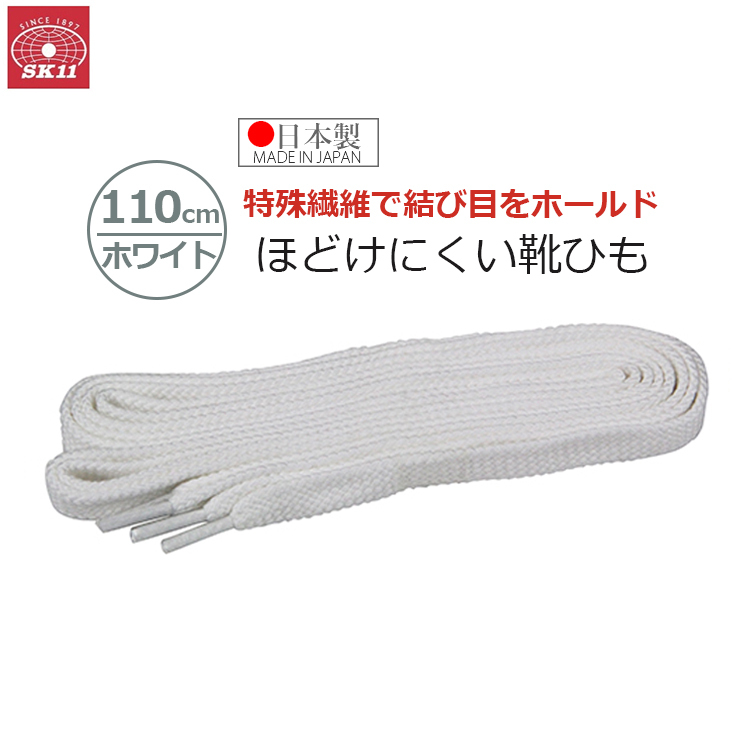 SK11 ほどけにくい 靴ひも 靴紐 110cm ホワイト 白 日本製 No-Slip110WHI