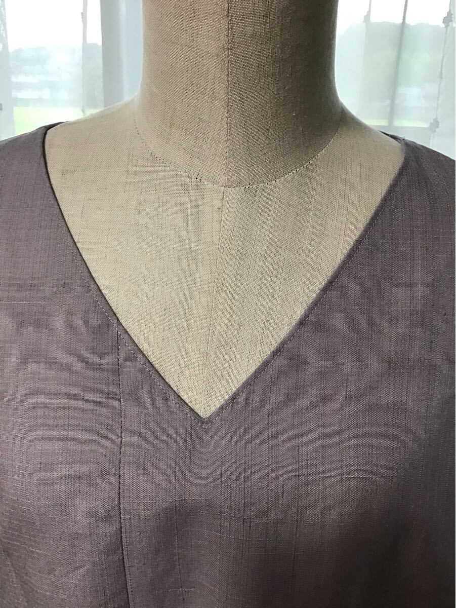 袖はダーツ5本でバルーン袖に、スカートも裾上30㎝位から広げず、バルーンぽく作りました。