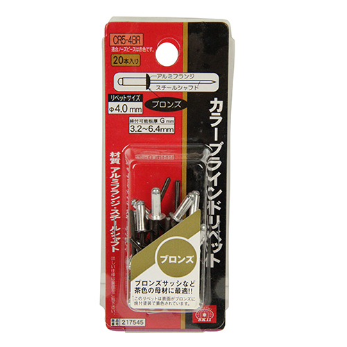SK11 カラーリベット 20本入 CR5-4BR ブロンズ 銅 締付可能板厚 3.2~6.4mm ブロンズサッシ 板厚 ハンドリベッター カシメ