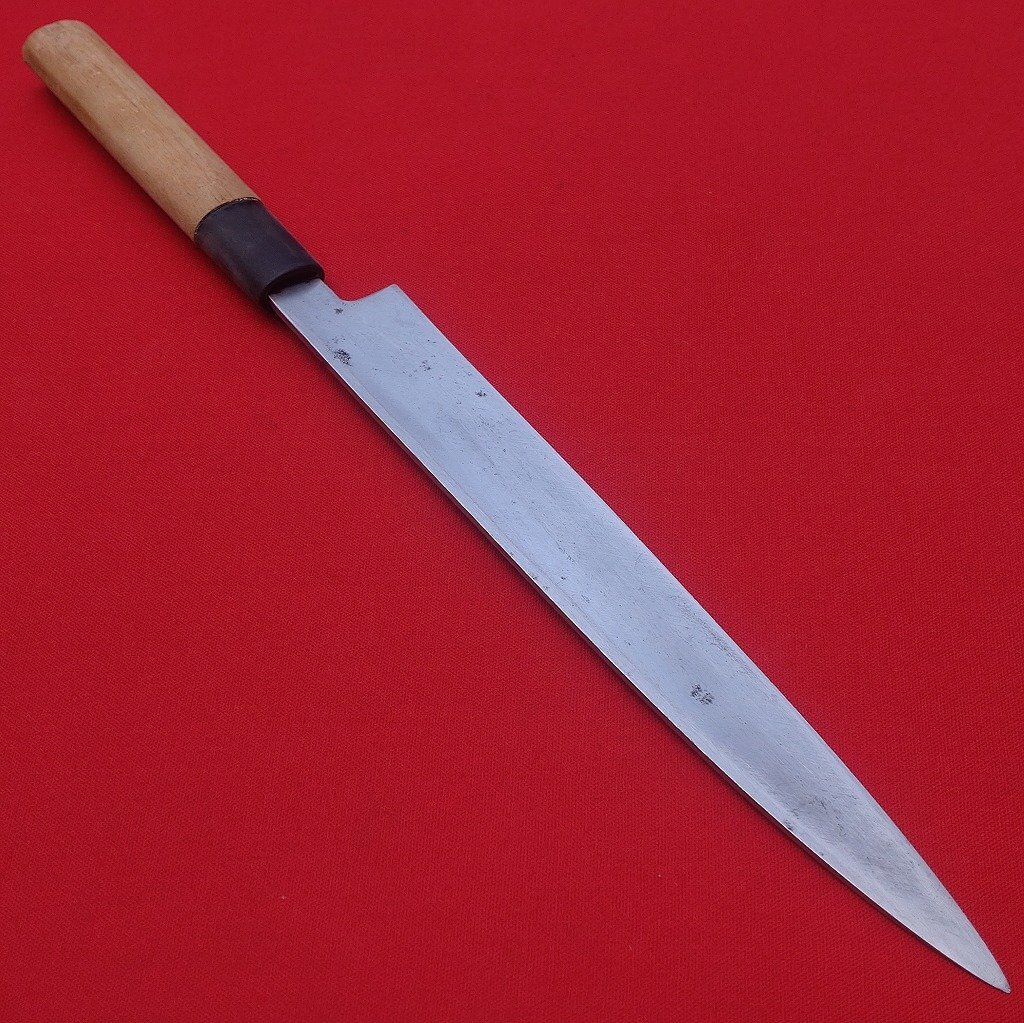 刺身包丁 秀宗作 刃長約225㎜ 峰厚約3.2㎜ 片刃 和包丁 柳刃包丁 正夫 栗型柄 庖丁 刃物 日本製 【2186】