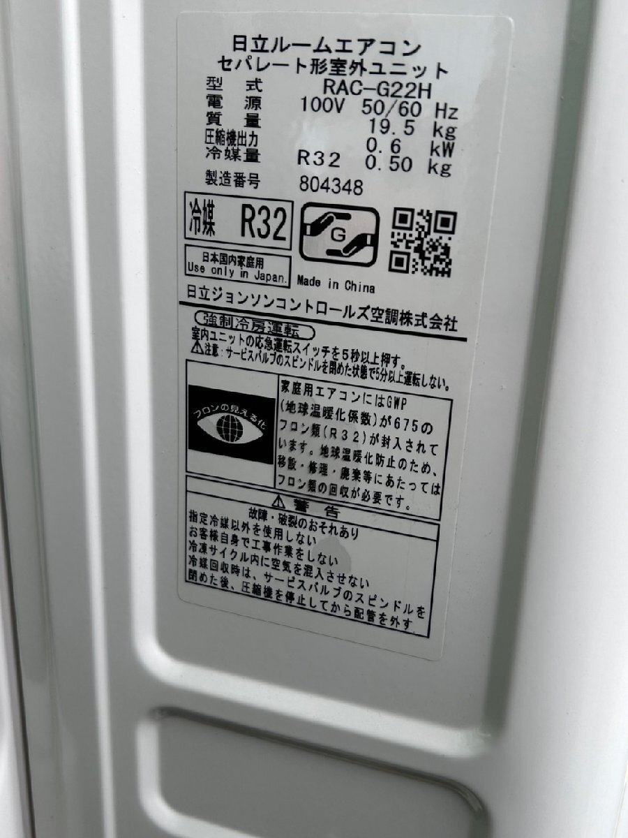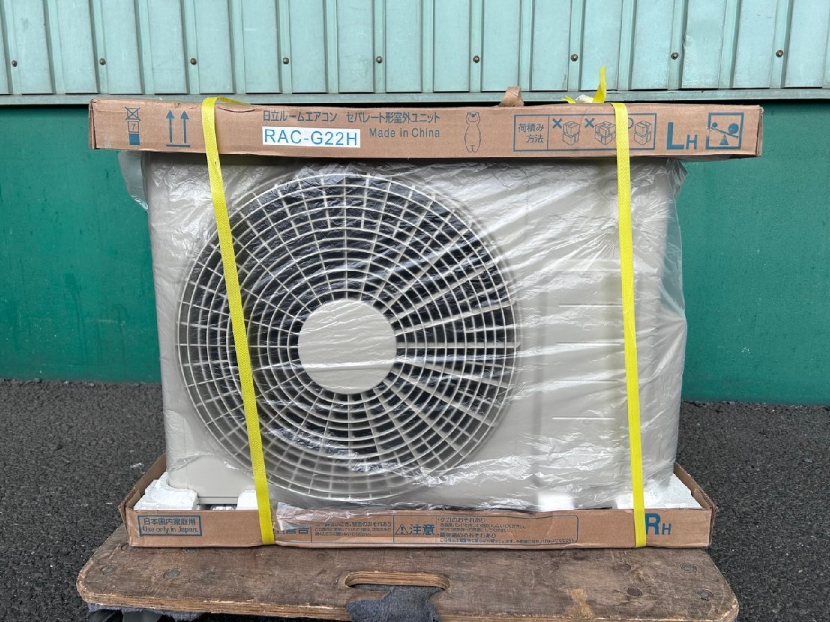 日立 RAC-G22H 室外機のみ 未使用品の出品となります。状態は未使用品ですが、長期倉庫に保管された為、梱包の痛みあります。未使用品として入荷してきてはおりますが、未確認ですので画像のほかに本体に凹みや傷が有るかもしれません。動作につきましては室外機が有りませんので動作未確認となります。動くかどうかの保証は致しかねますので、動作及び外装などノークレーム・ノーリターンでお願いします。超特価の18000円スタートでお願いいたします。落札価格に別途消費税がかかります。発送は佐川急便の送料着払い(保険加入不可)を予定しております。システム上送料0円と表示されてしまいますが、送料着払い運賃がかかりますのでご了承ください。エアコンの室内機のみ、室外機のみの商品はほかの販路でも販売させていただいておりますので、ご希望の場合はなるべく早くご入札をお願いします。入札がない場合は取り消しをすることがございますのでご注意ください。ほかにも多数出品しておりますのでよろしくお願いいたします。