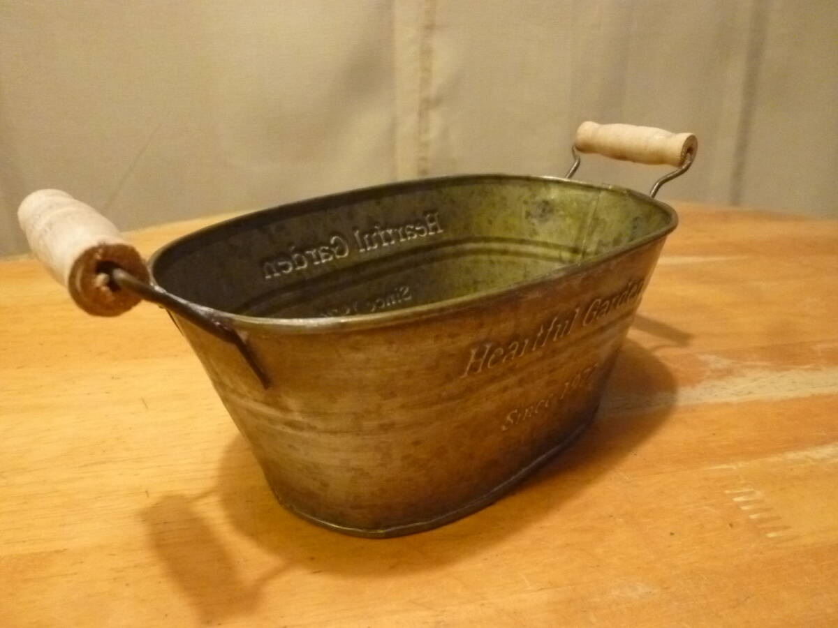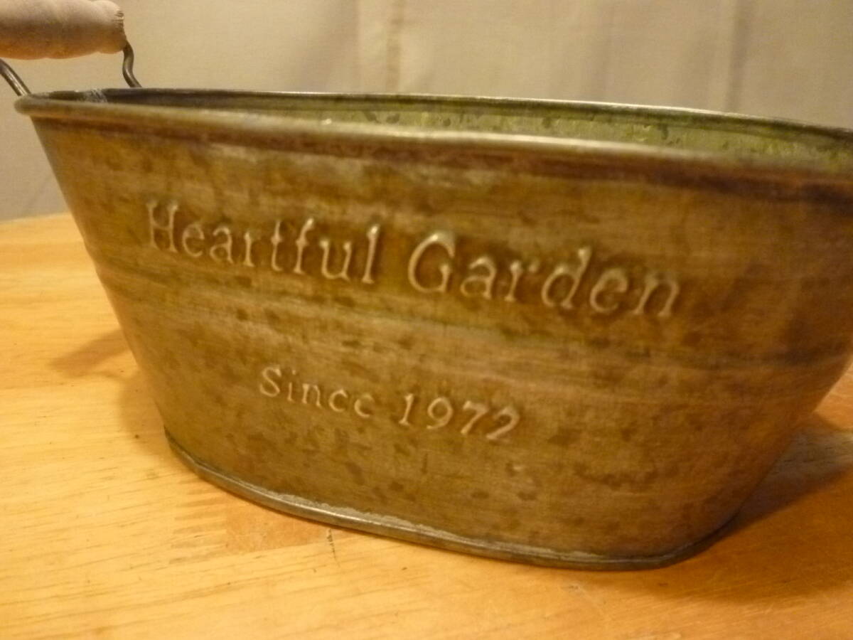 こちらはサイドにハートフルガーディンの英字等が立体的に処理されたブリキ製の小物入れ?の様で、造りや色等も古さを感じオシャレです。