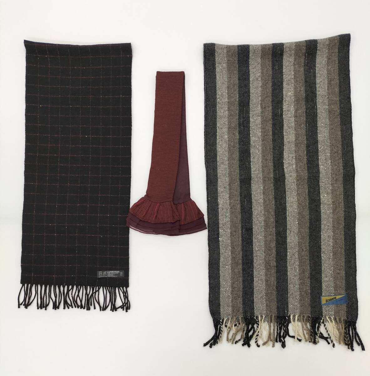 ⑥ECHARPE マフラー グレーのストライプ柄
