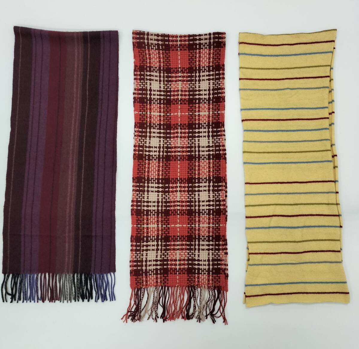 ⑨CHAPS RALPH LAUREN マフラー 黄・青・赤・ボーダー柄