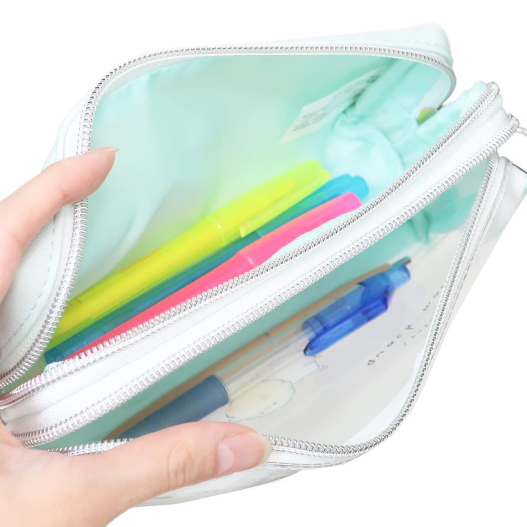 新学期に可愛い雑貨や文具で揃えちゃおう 毎日が楽しくなるキュートなZAKKAシリーズこちらは超人気アイテム[ツインファスナーペンポーチ]ペンや小物などを分けて収納出来て使いやすいマチ広の大容量タイプでたっぷり入れられます同シリーズのかわいい文具いろいろあるのでお気に入りを揃えてくださいサイズ:約185x75x50mm素材:合成皮革/PVC