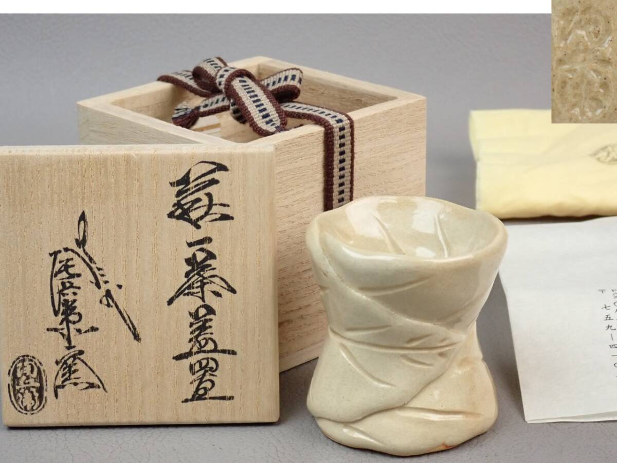 【骨董・茶道具】★十三代 田原陶兵衛★★萩一葉蓋置 gn066tb21