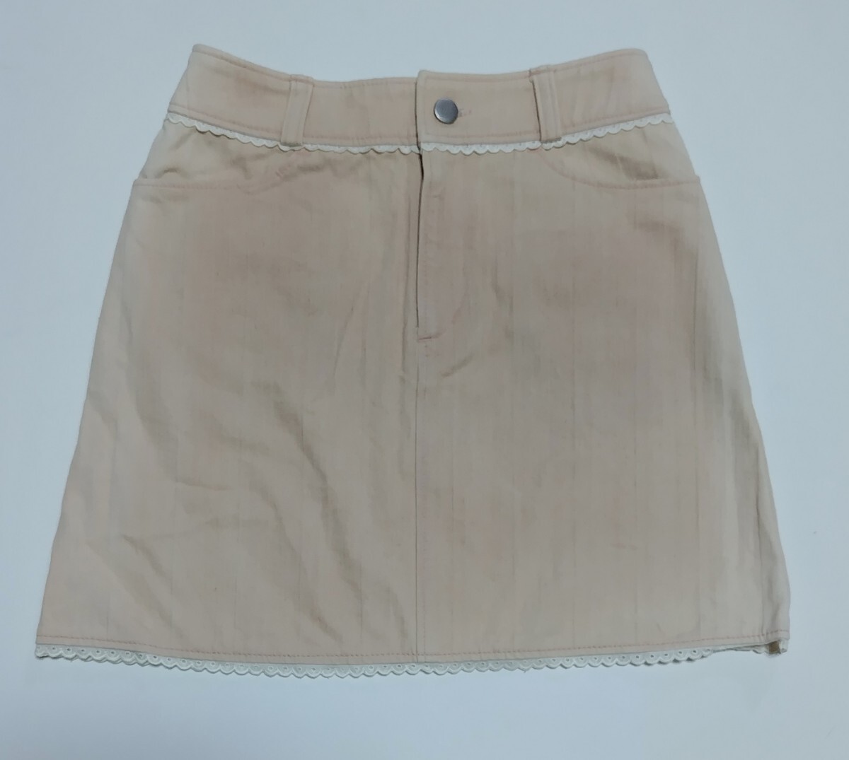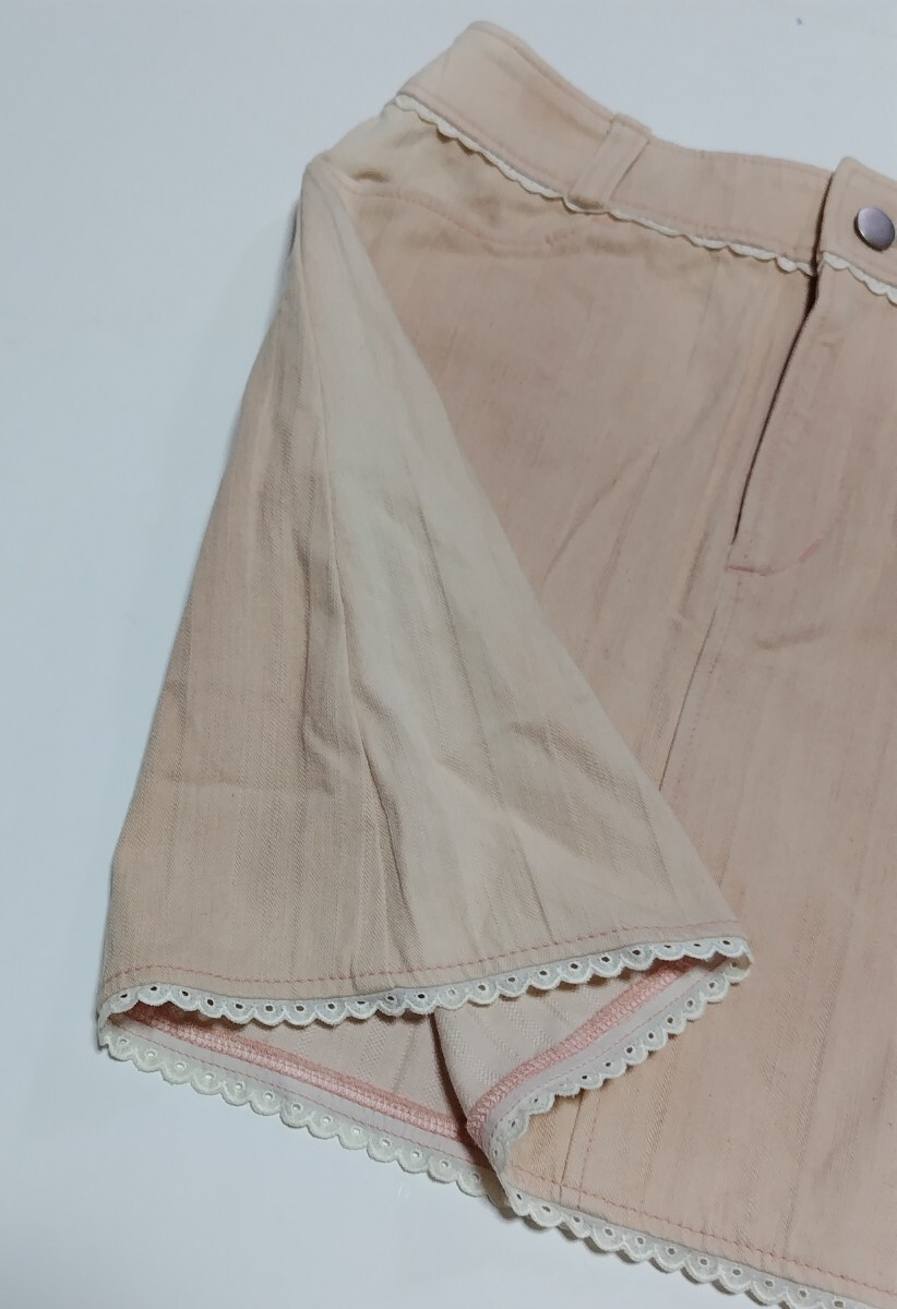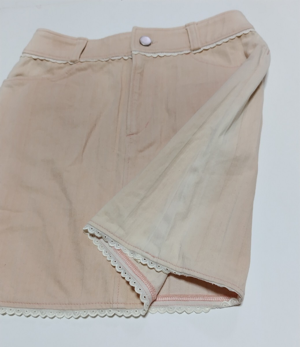 訳アリ未使用品】 裾レースミニスカート ☆ ピンク 色 ☆  150㎝ ☆ サイドに日焼けあり ☆ ストレッチ素材