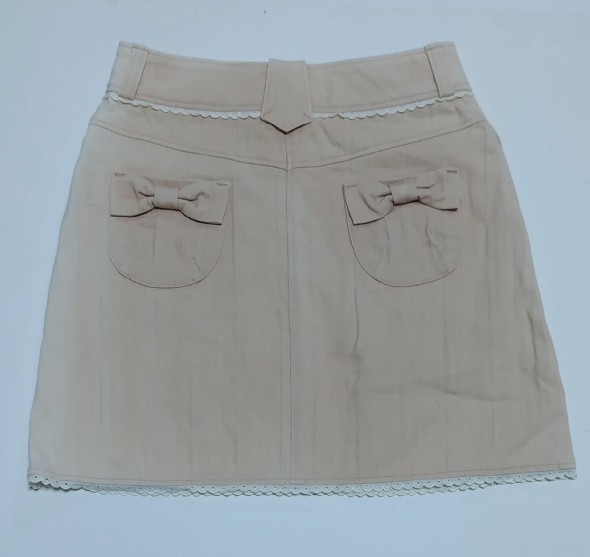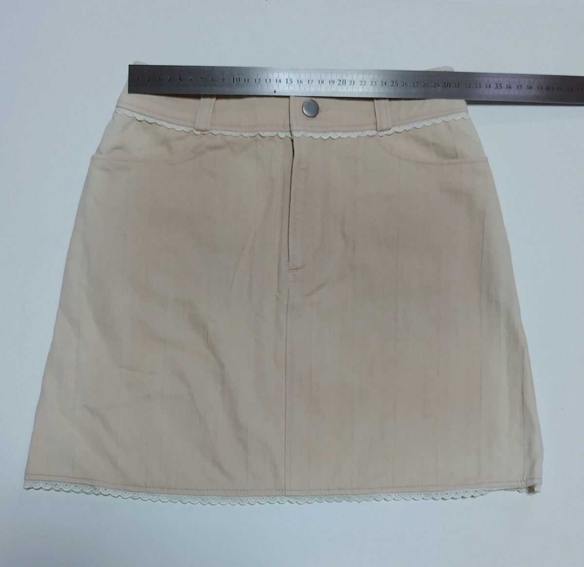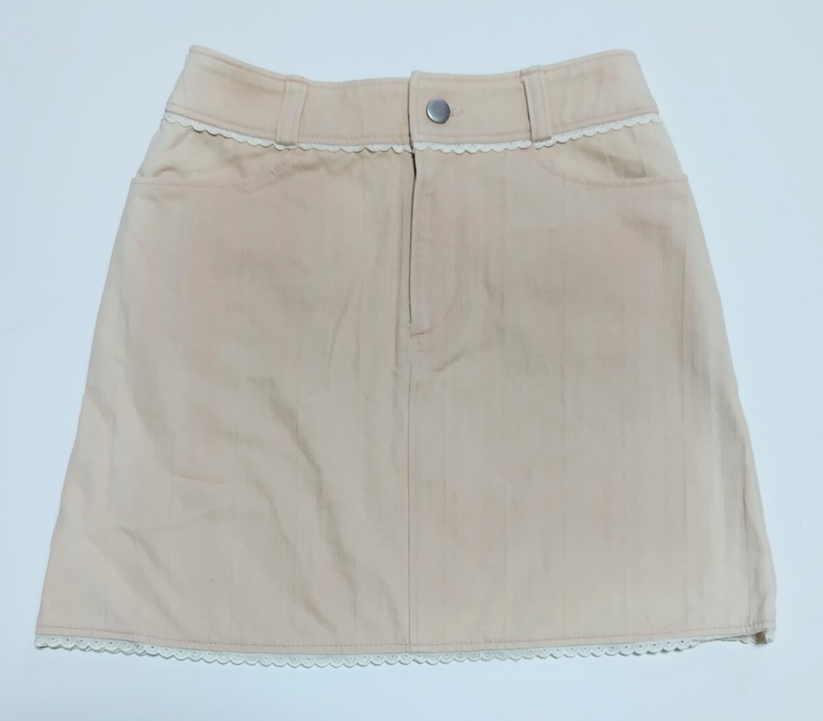 訳アリ未使用品】 裾レースミニスカート ☆ ピンク 色 ☆  150㎝ ☆ サイドに日焼けあり ☆ ストレッチ素材
