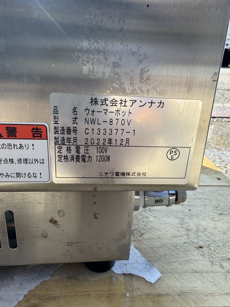 2023年4月新品導入 ニチワ アンナカ 電気ウォーマーポット NWL-870V 単相100V 幅350×奥行590×高さ250mm 大阪府摂津市