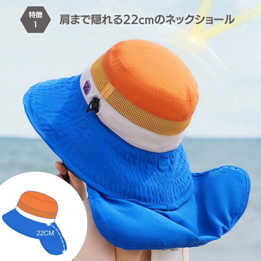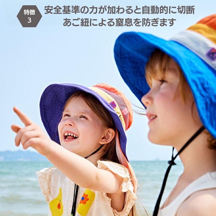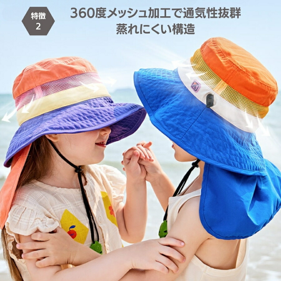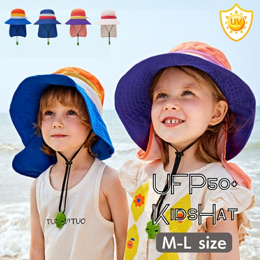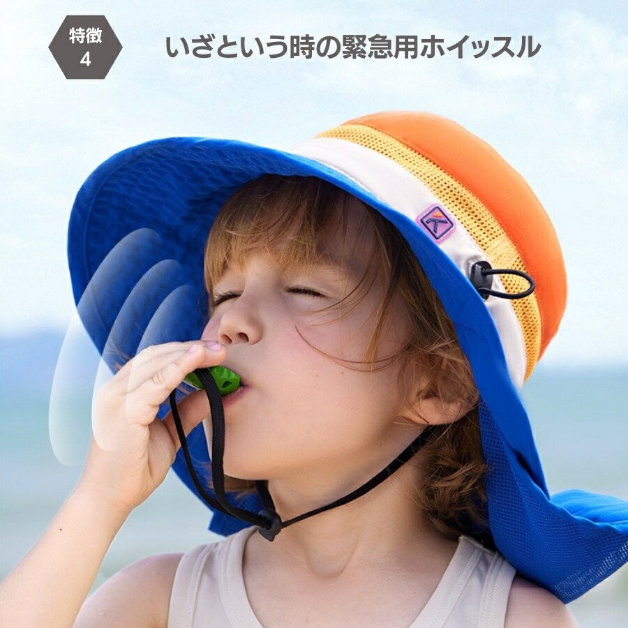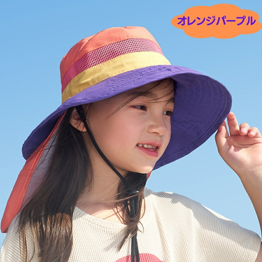 | 商品名 | パープルオレンジ Lサイズ 子供用 キッズ 帽子 ハット 日焼け防止 紫外線 首ひも 海水浴 プール 笛付 あご紐 UPF50 紫外線防止 メッシュ |