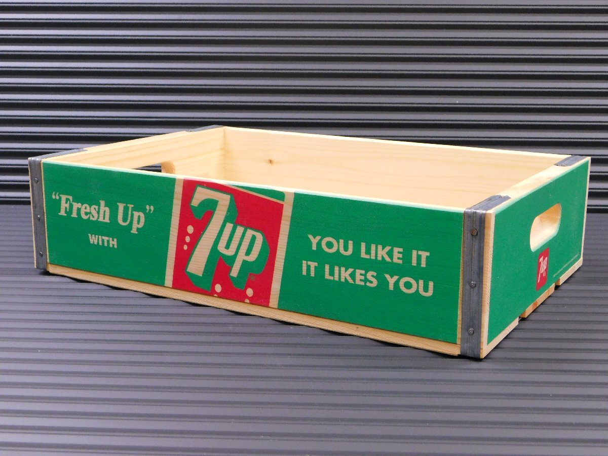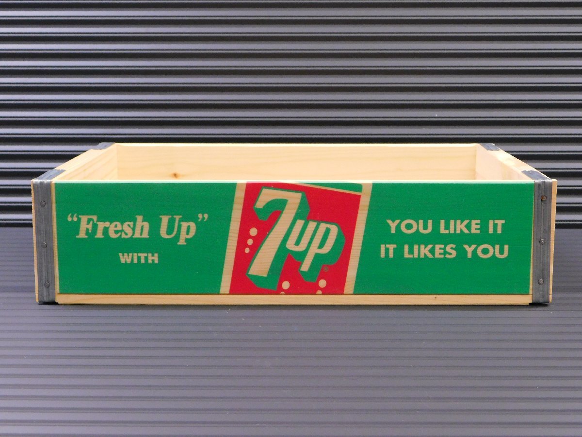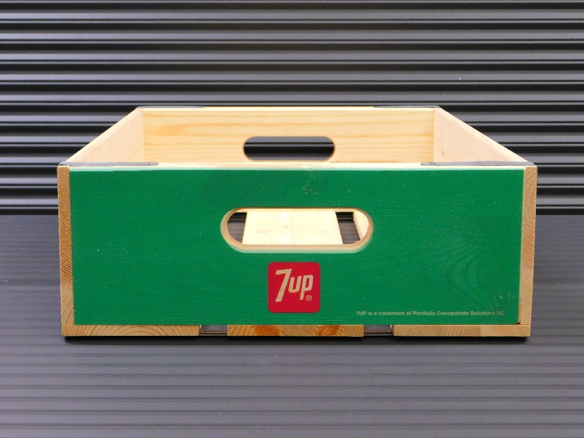 ◆底板付き◆【7UP・セブンアップ】※《ウッドボックス/ライトグリーン》 アメリカン雑貨 インテリア収納 ドリンクケース 木箱