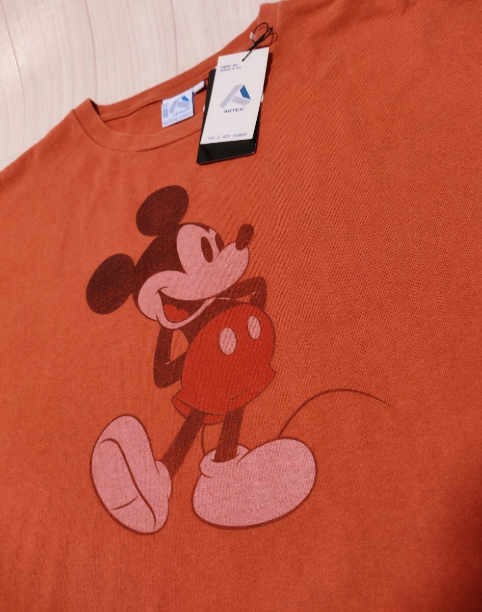 ミッキーをヴィンテージライクなプリントで古着感を出しているのが特徴的です。
