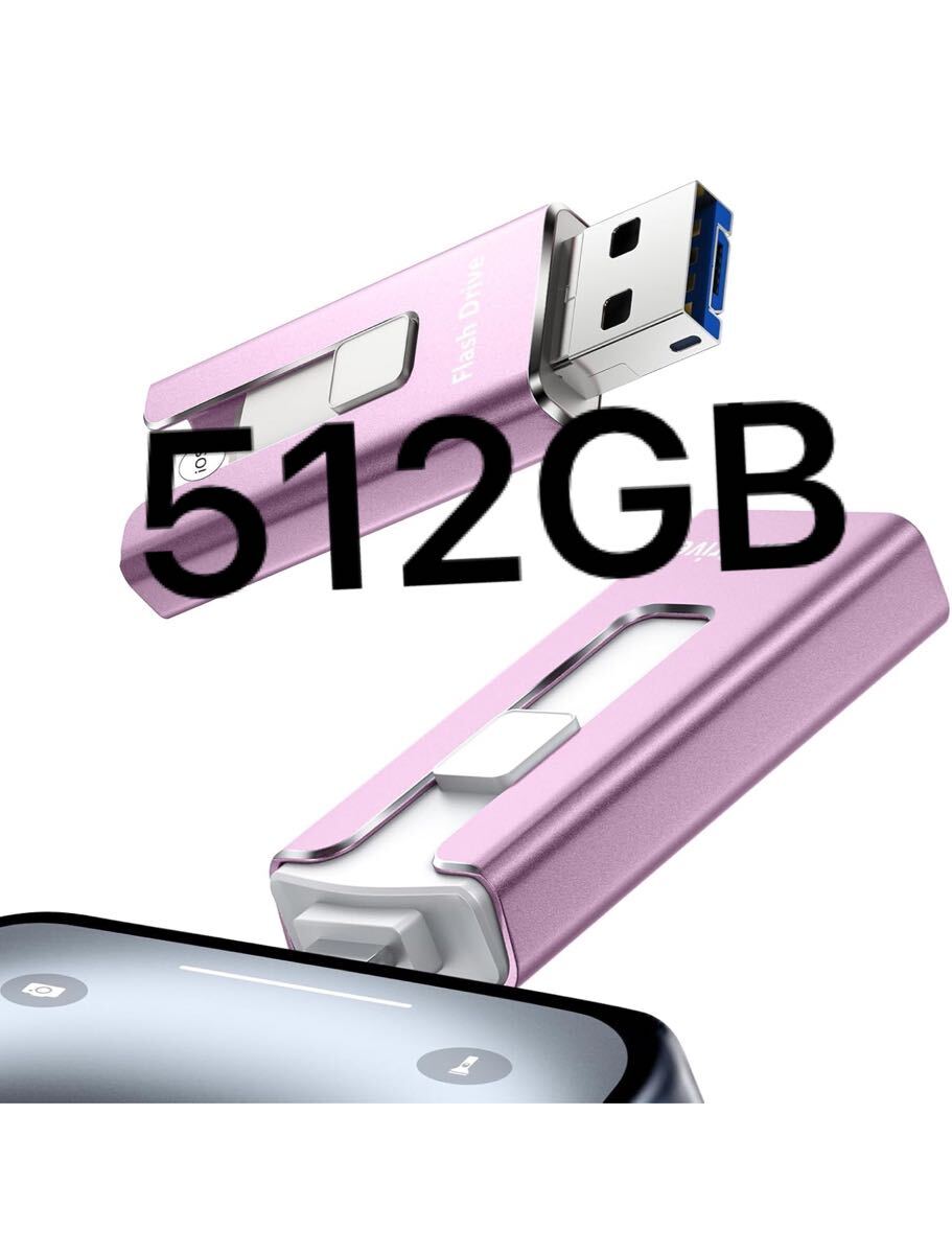 usbメモリ「アプリ不要 phone から 直接 usb に 写真 を 移す」phone対応 データ保存 移行 スマホ写真保存 u s b外付け US Bメモリ iOS/Type-C/U-SB-A/Micro USB搭載 大容量 フラッシュメモリ 高速 データバックアップ 外付けストレージ 携帯容量不足解消 iPad/PC/Macbook/P-hone対応 512GB パープル