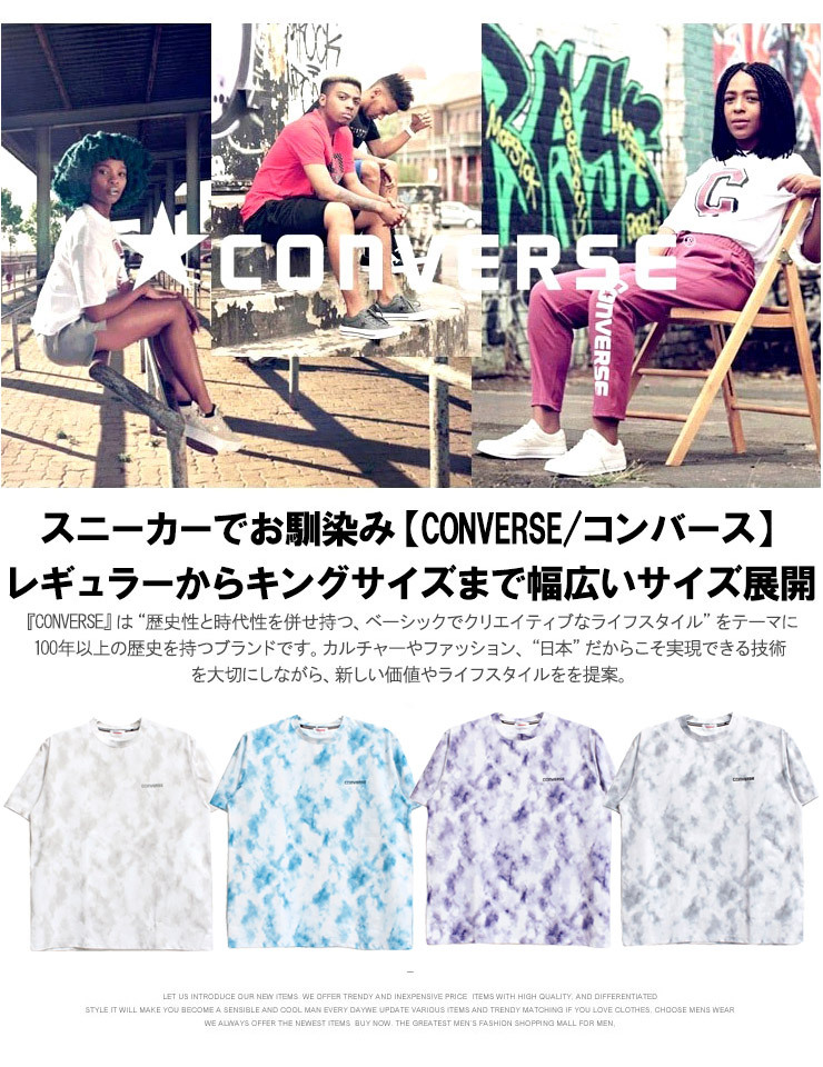 | 商品名 | 【新品】 5L グレージュ コンバース CONVERSE 半袖 Tシャツ メンズ 大きいサイズ タイダイ柄 ドライ 吸汗速乾 プリント クルーネック カットソー |