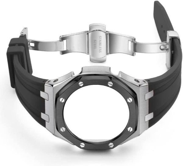 G-SHOCK/Gショック GA-2100 / GA-2110/ GA-B2100 第四世代ベゼル&ベルト カスタム パーツ 銀&黒
