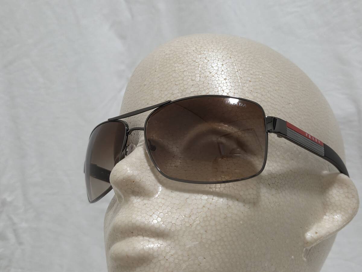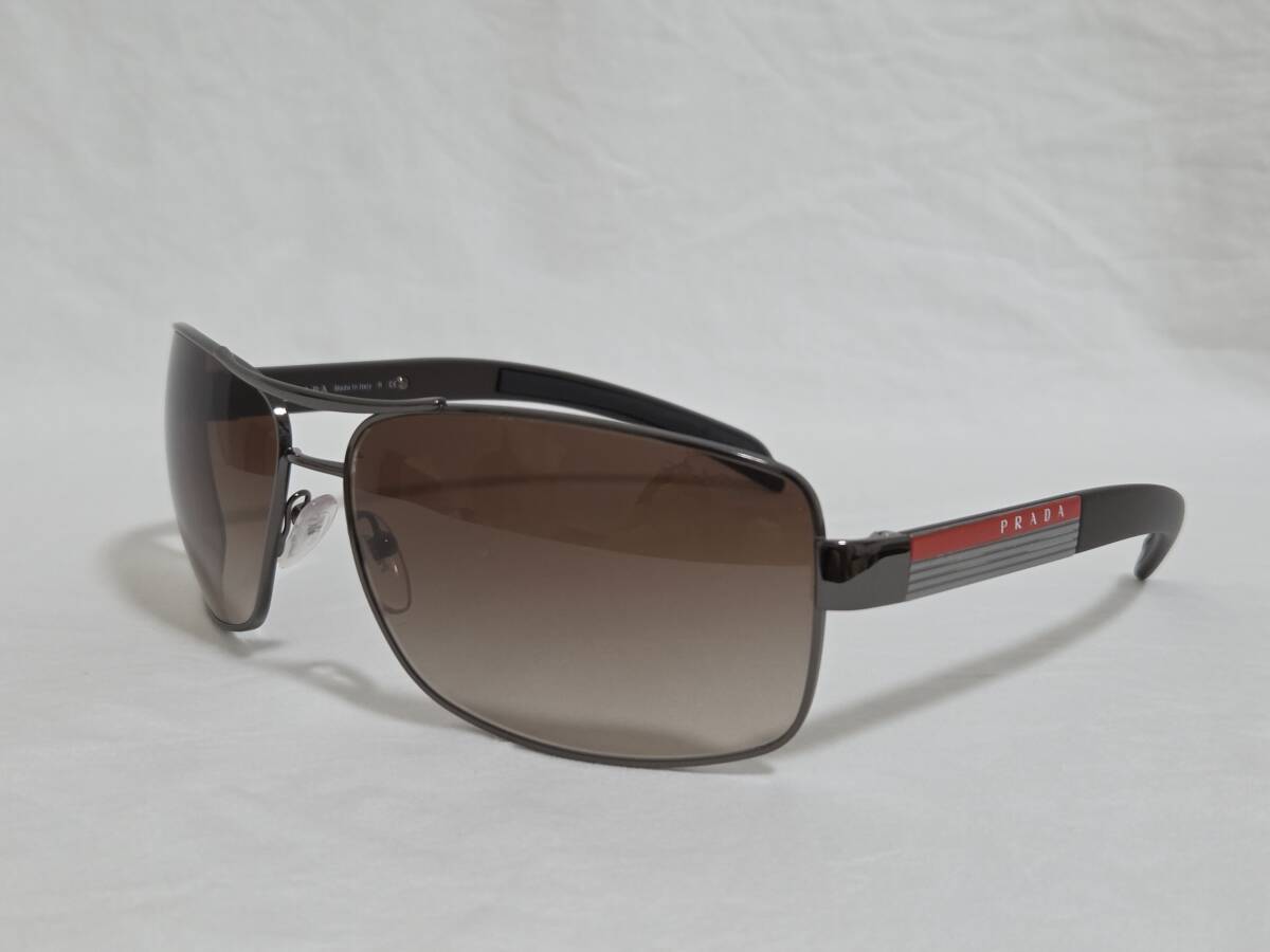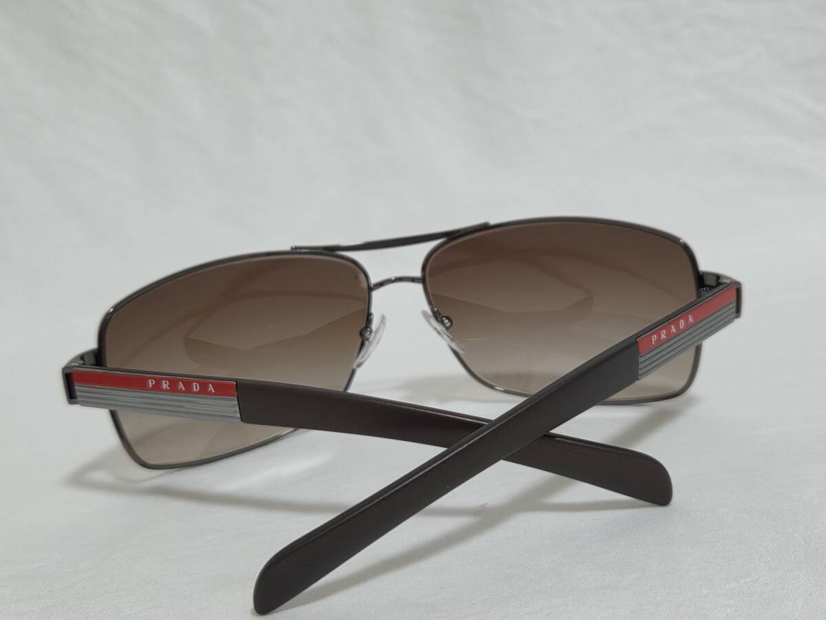 正規良 レア PRADAプラダ アイコンロゴ ティアドロップ メタルコンビ サングラス 茶×クロームSV×赤 ラインプレート クラシックアイウェア