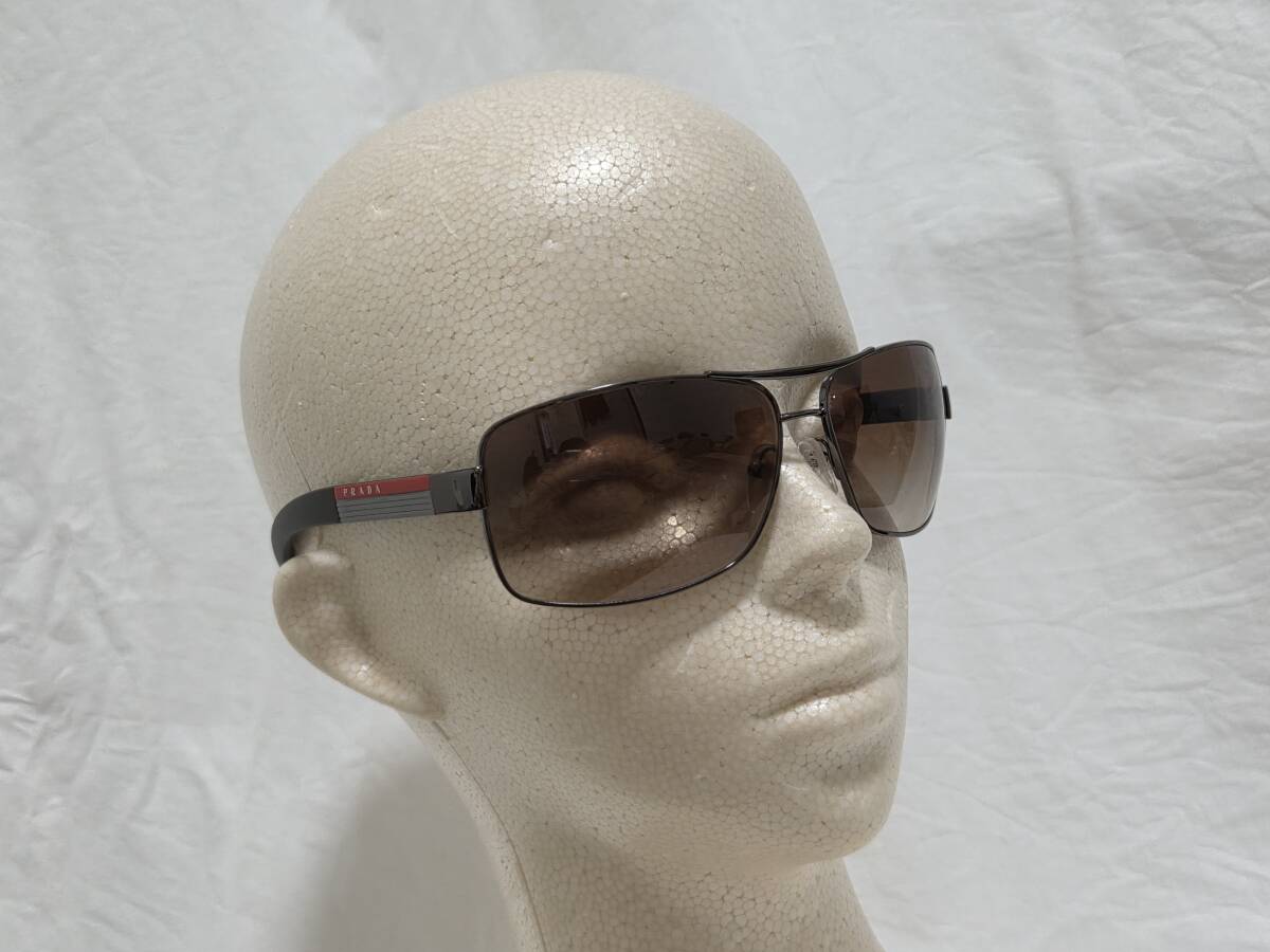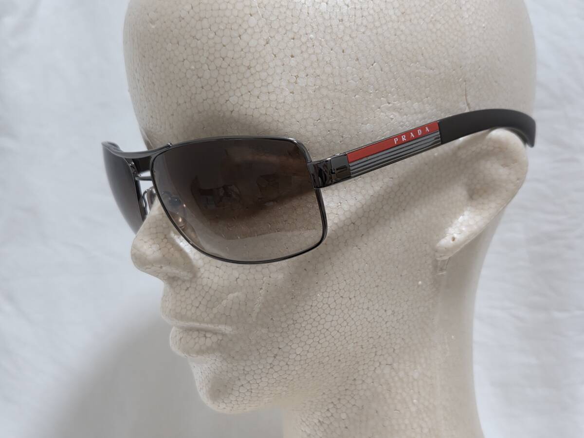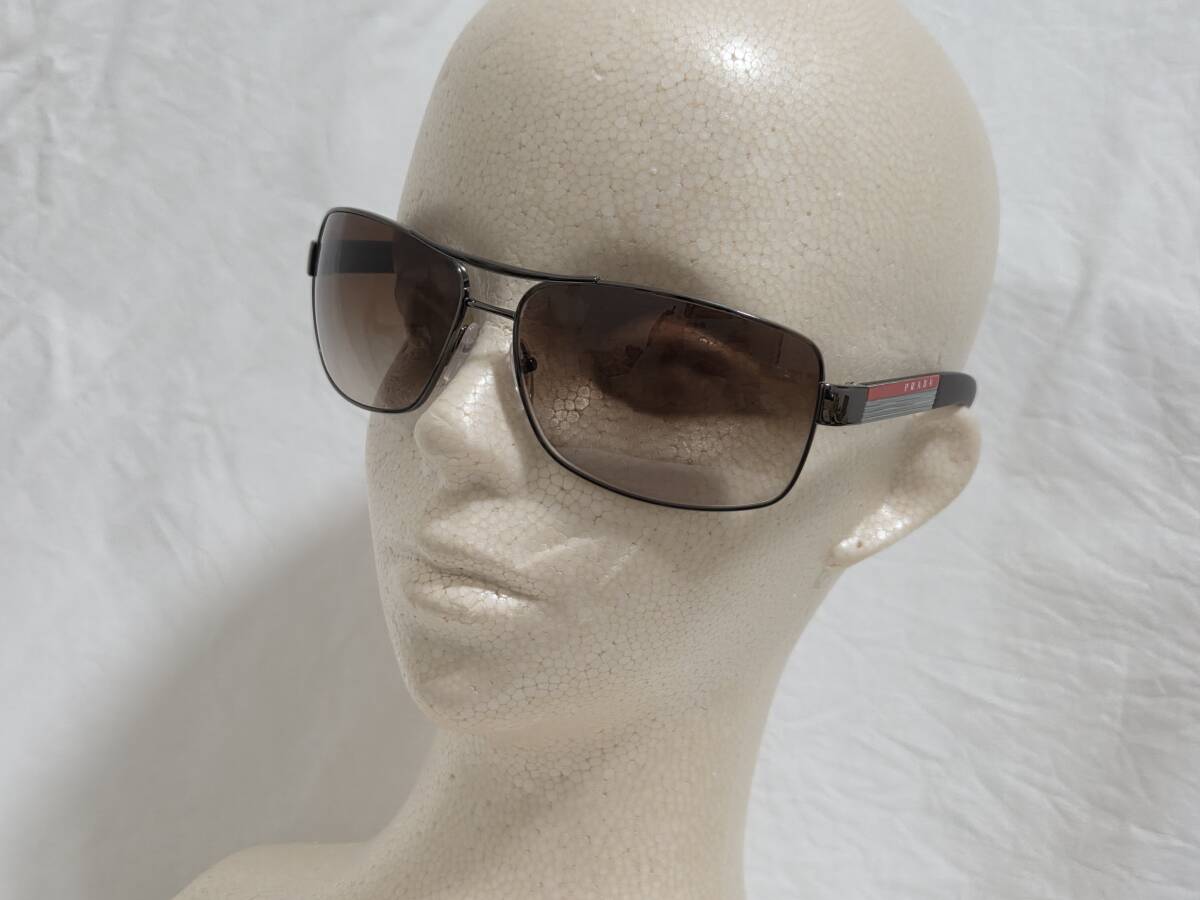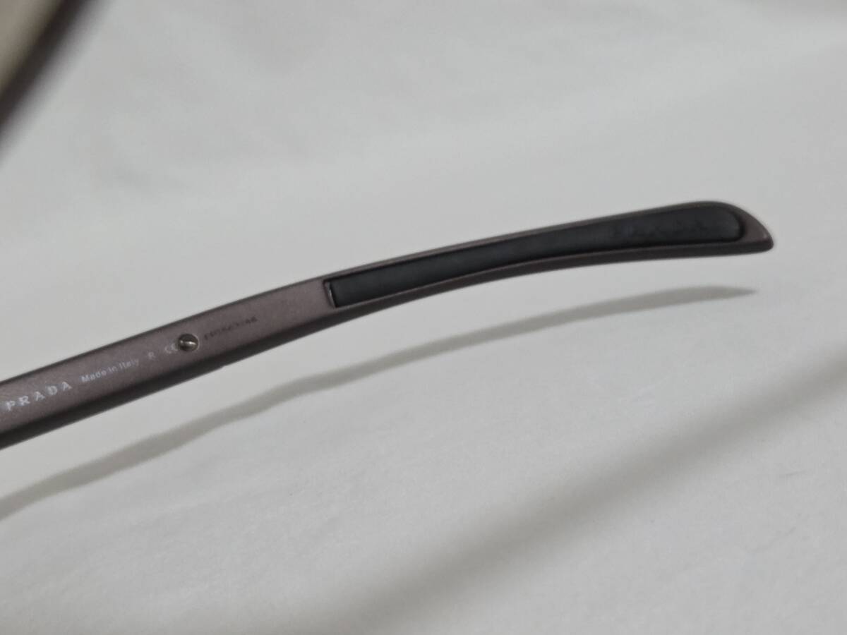 正規良 レア PRADAプラダ アイコンロゴ ティアドロップ メタルコンビ サングラス 茶×クロームSV×赤 ラインプレート クラシックアイウェア