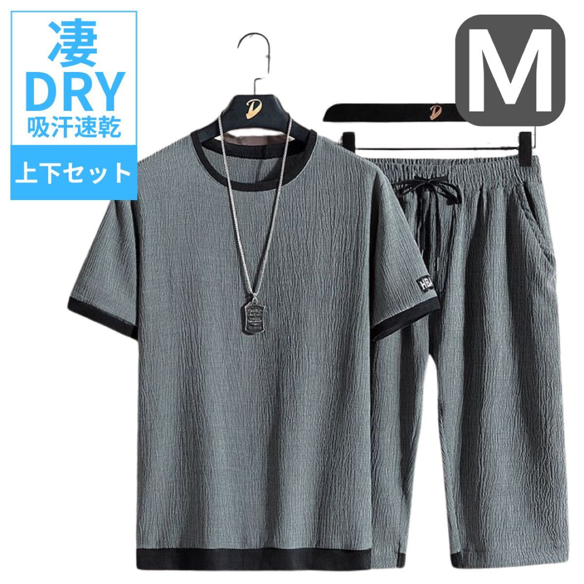 セットアップ上下 メンズ ルームウェア 半袖 半パン シワ加工 吸汗速乾