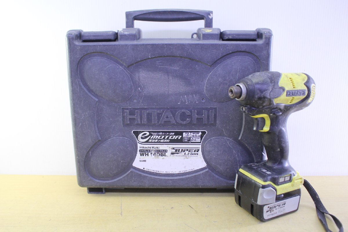 ●HITACHI/日立工機 WH14DBL コードレスインパクトドライバ 14.4V バッテリー/ケース付き 締付 ネジ締め 電動工具 難あり【11063595】