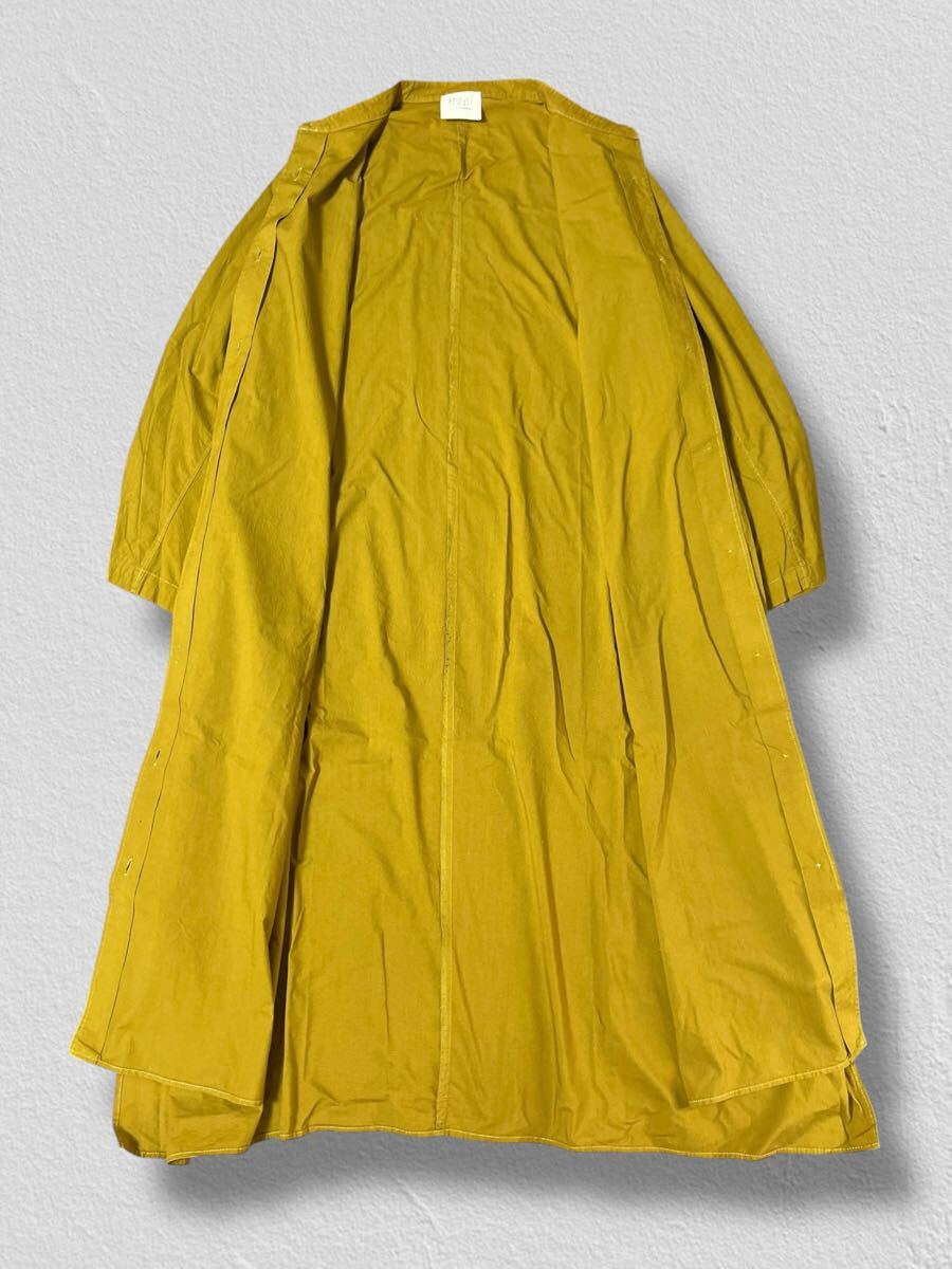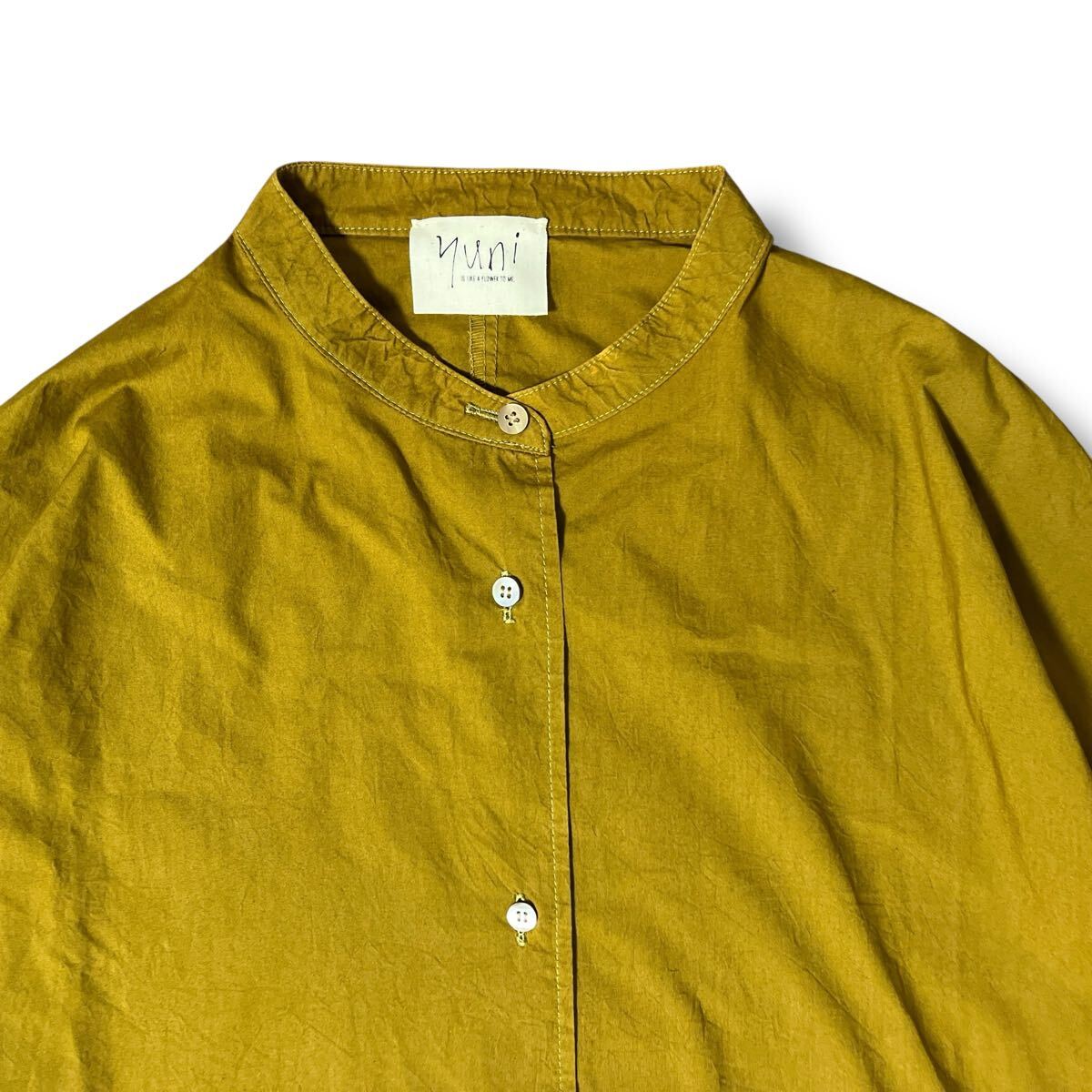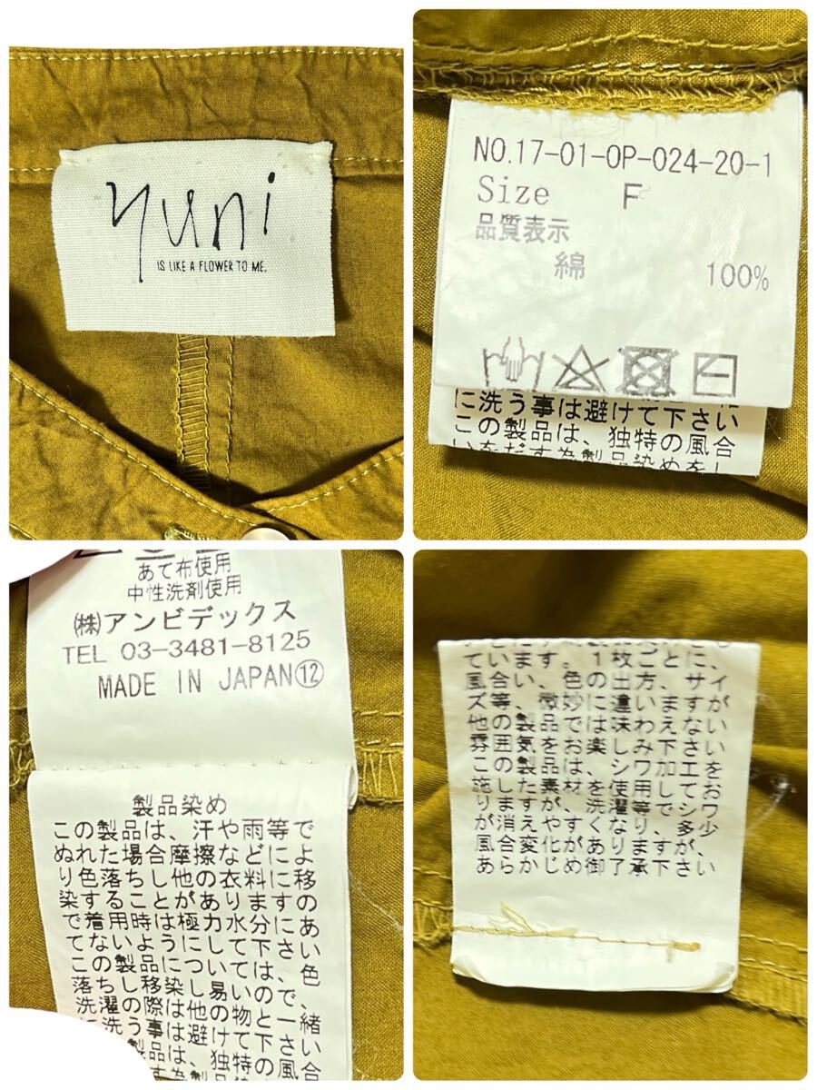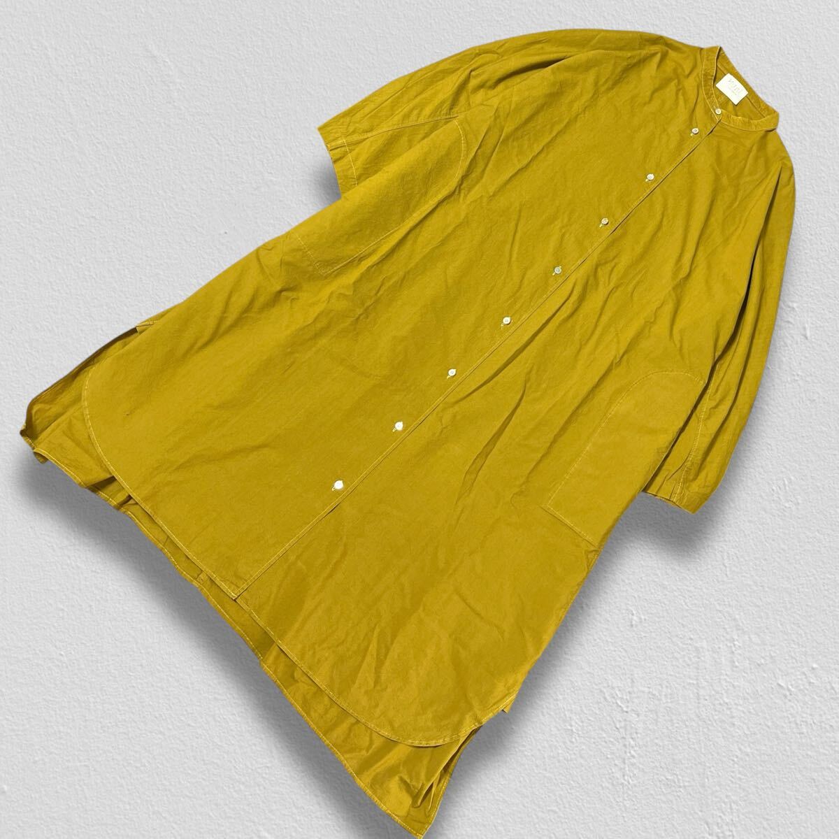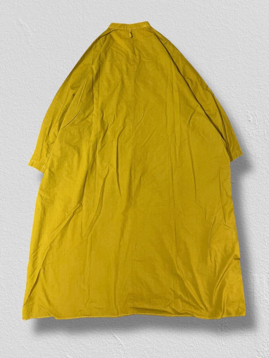 yuni スタンドカラーシャツワンピース マスタード サイズF ●洗濯プレス済● ユニ シャツワンピ オーバーサイズ 体型カバー 古着/539