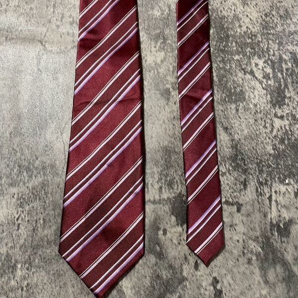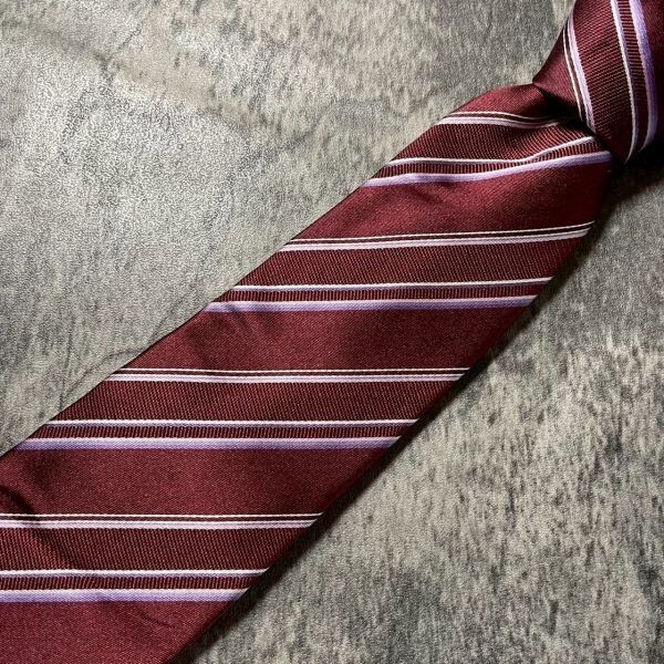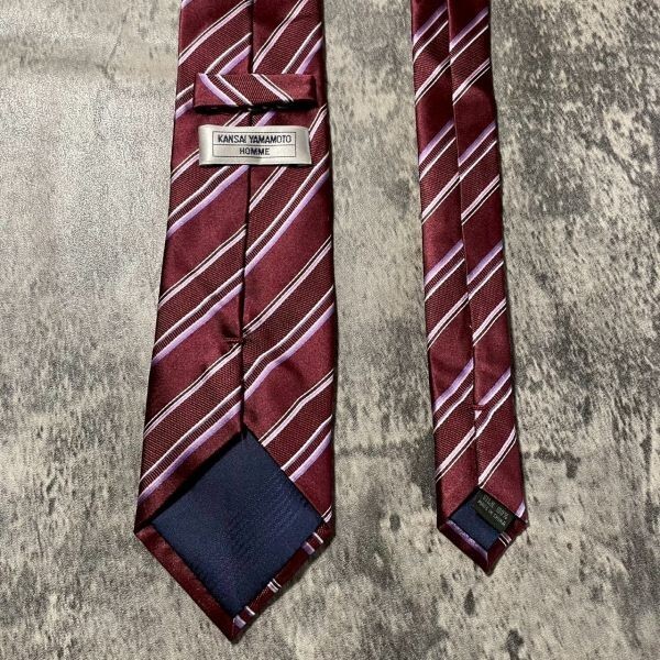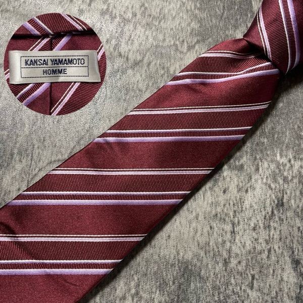 [KN328] KANSAI YAMAMOTO レッド ストライプ シルク ネクタイ