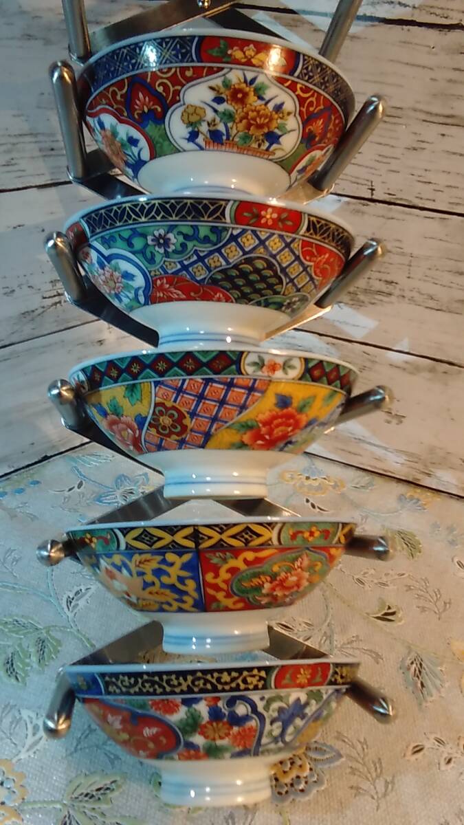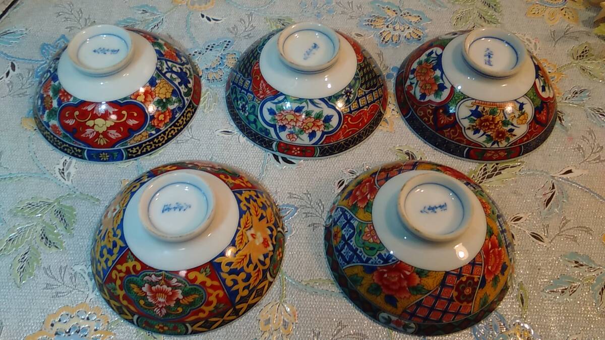 金彩 古伊万里 絵変わり茶碗 食器 5客