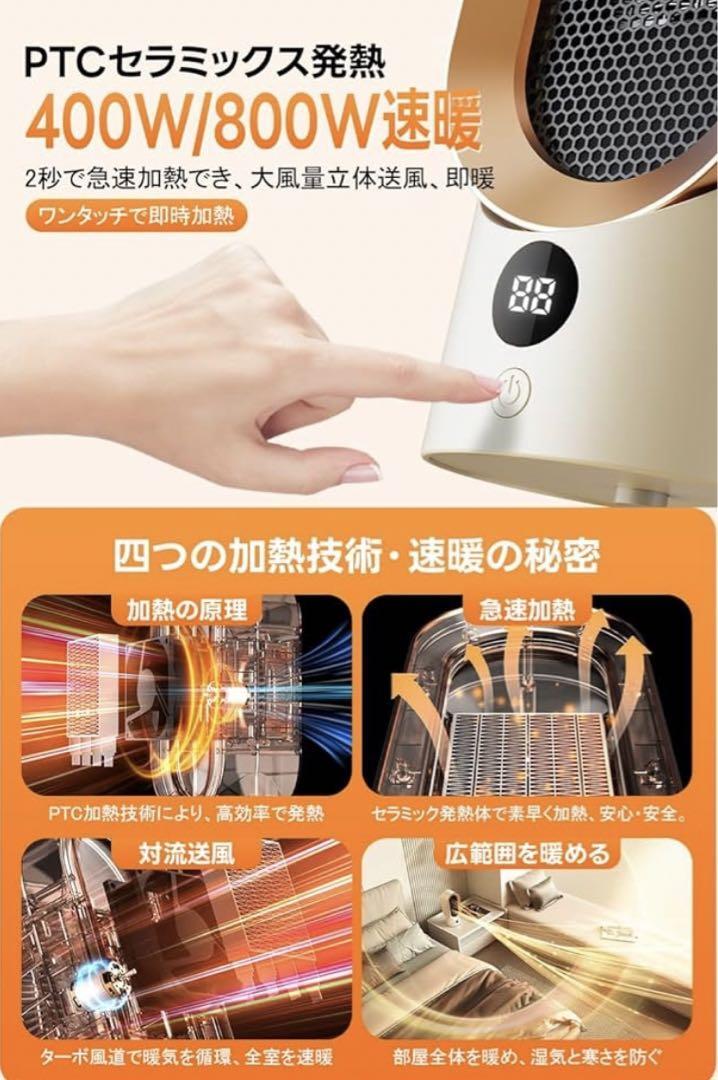 【2秒で速暖・足元ヒーター・持ち運び便利】