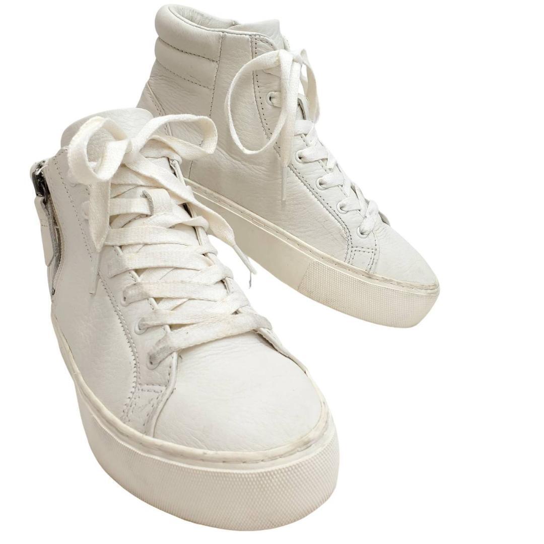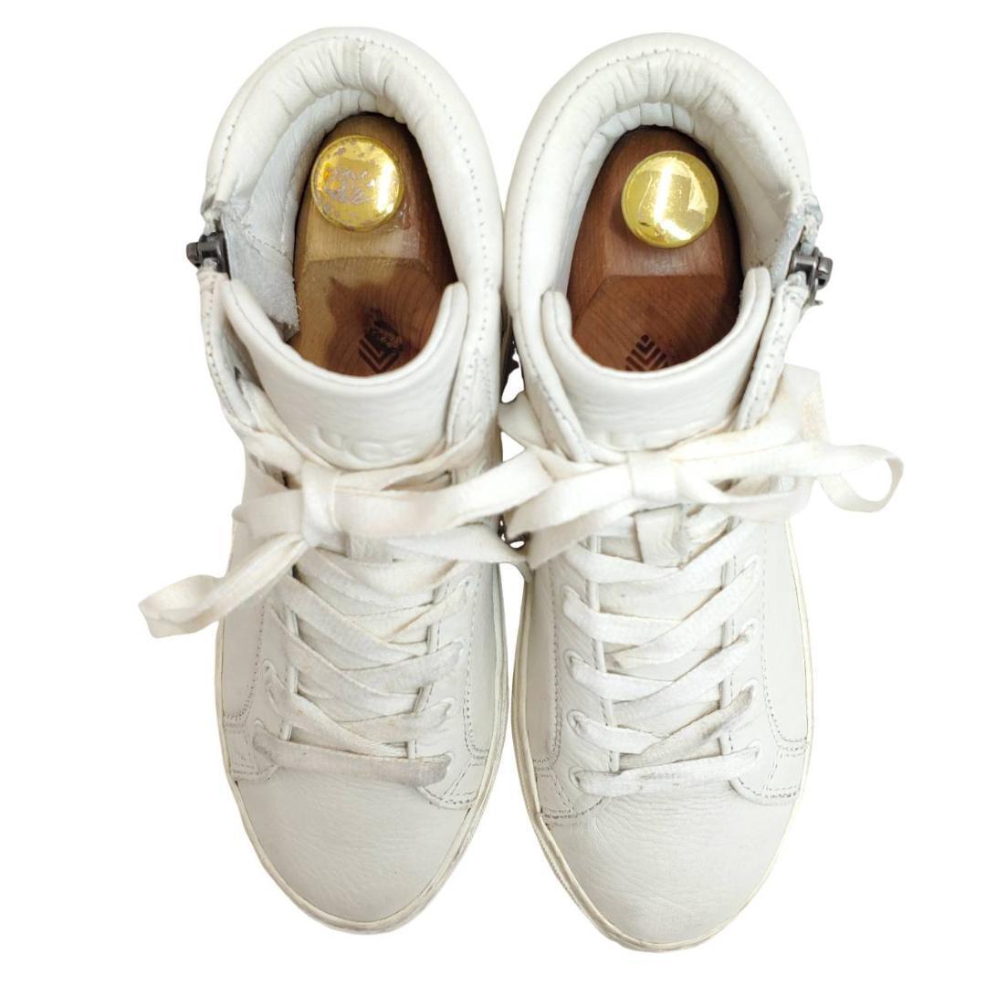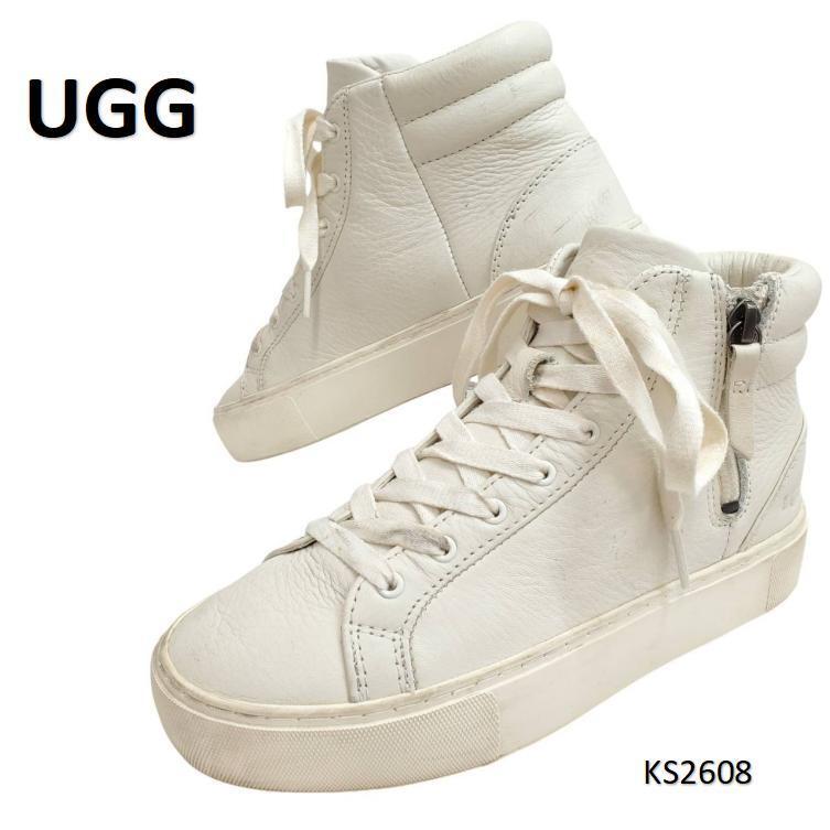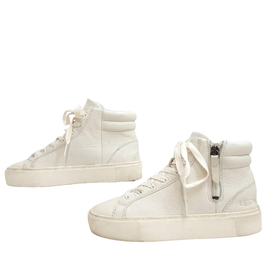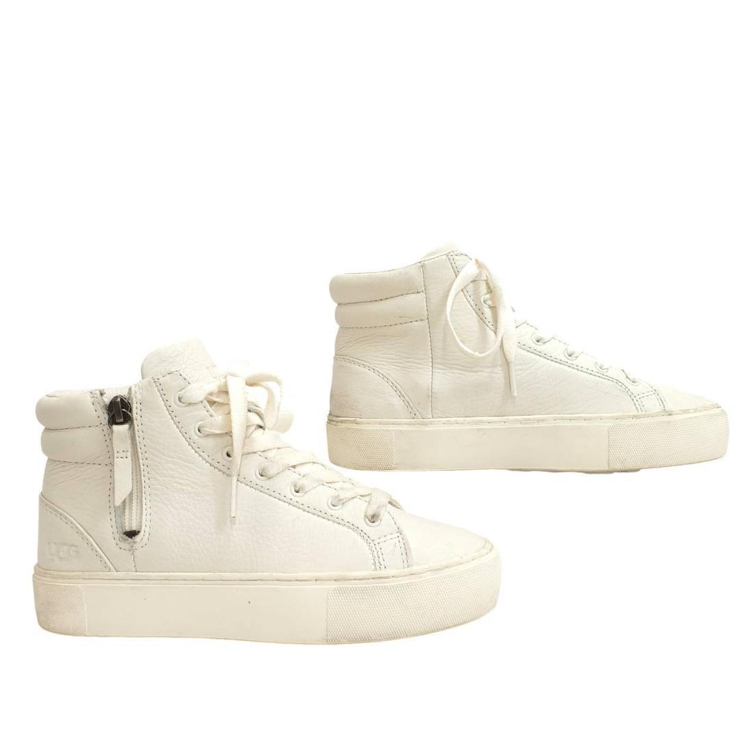 柔らかく上質なホワイトレザーを使用した、UGGのハイカットスニーカーです。