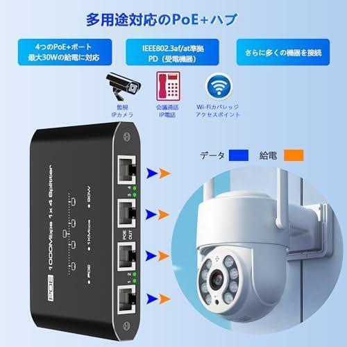 PoE ハブ 1入力4出力 スイッチングハブ 5ポート ネットワーク増設 844