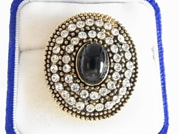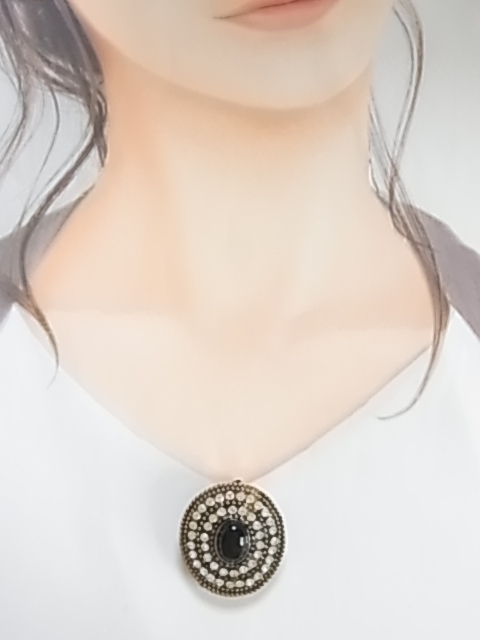 ▲ビンテージ/ヴィンテージ 2way キラキラのクリアラインストーンが輝くビジュー 墨色ブラックトーンのストーン調 スカーフクリップ