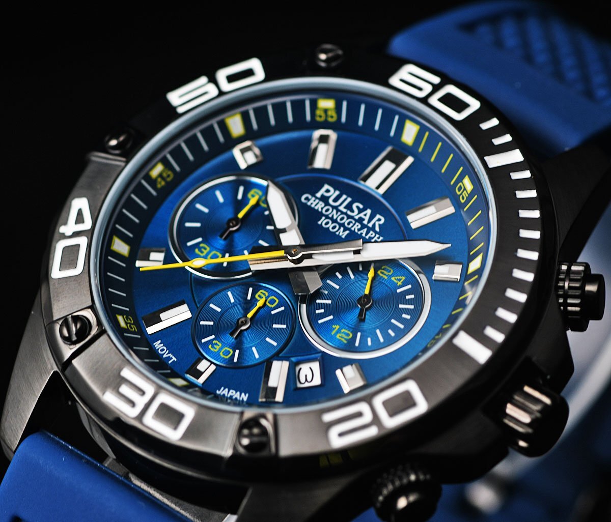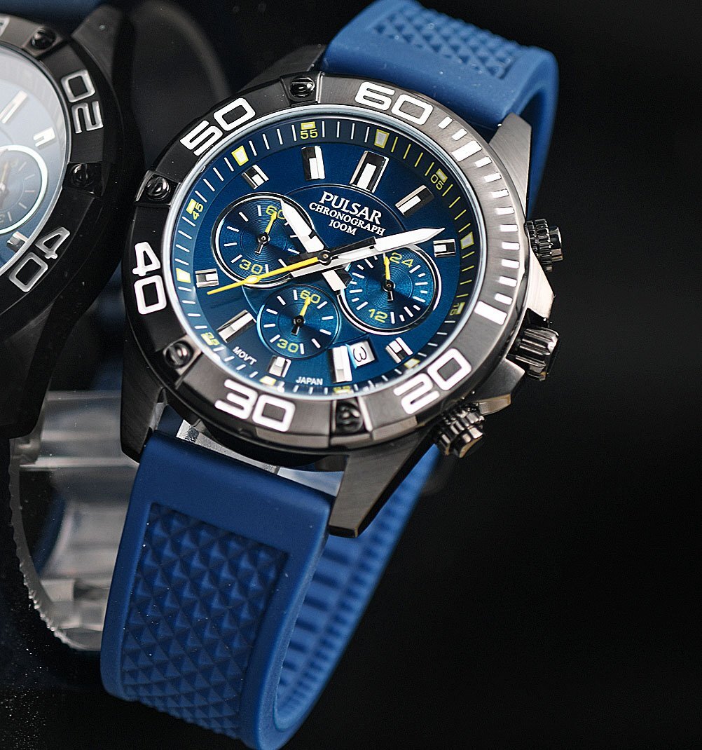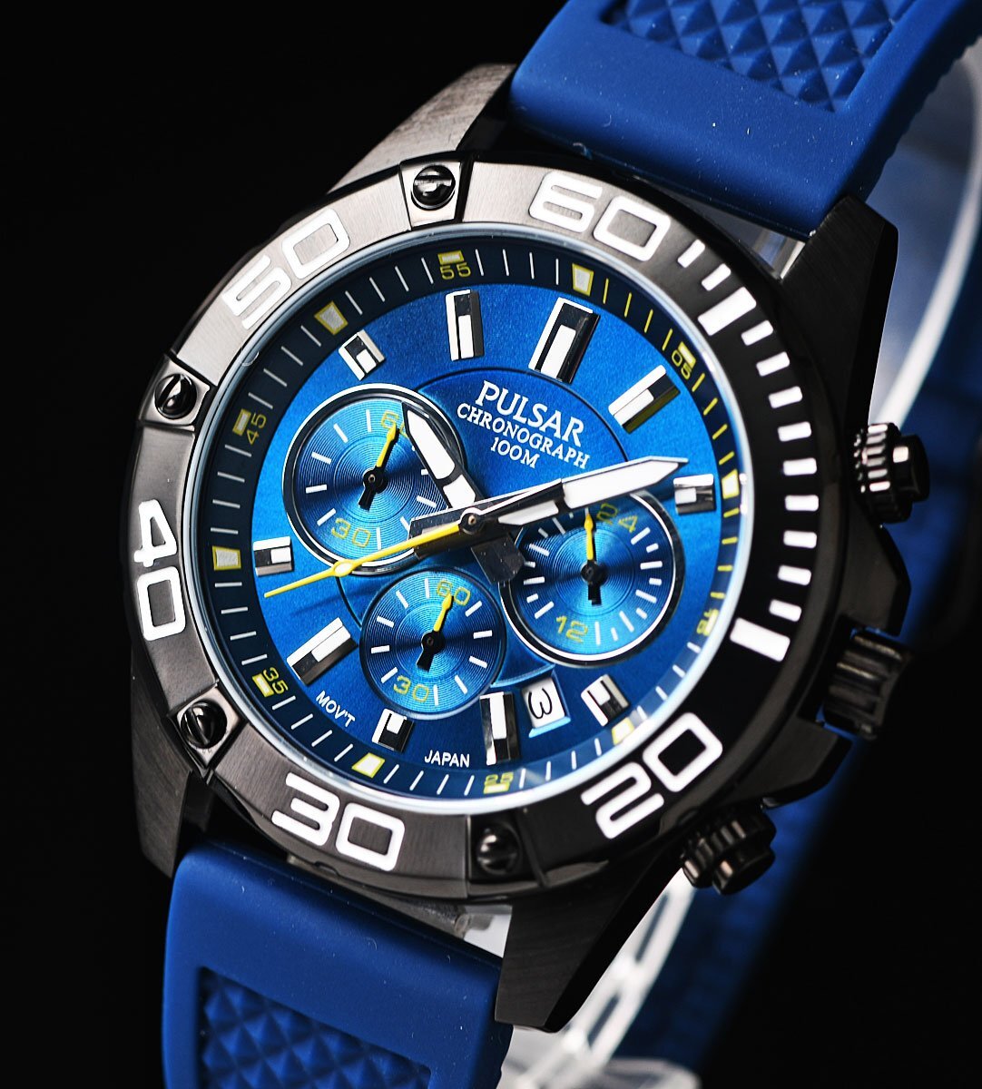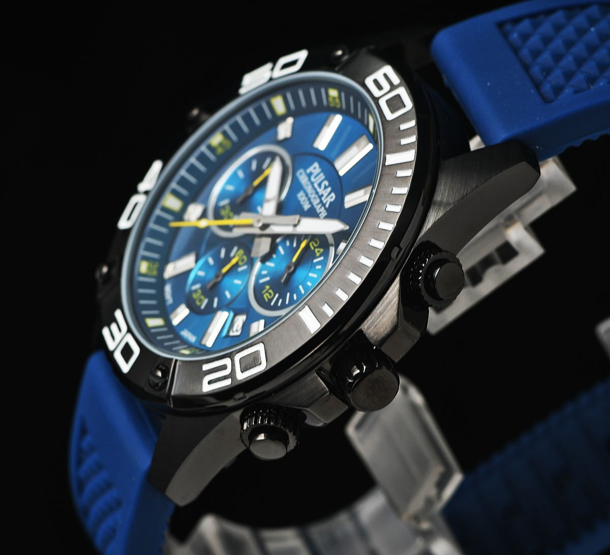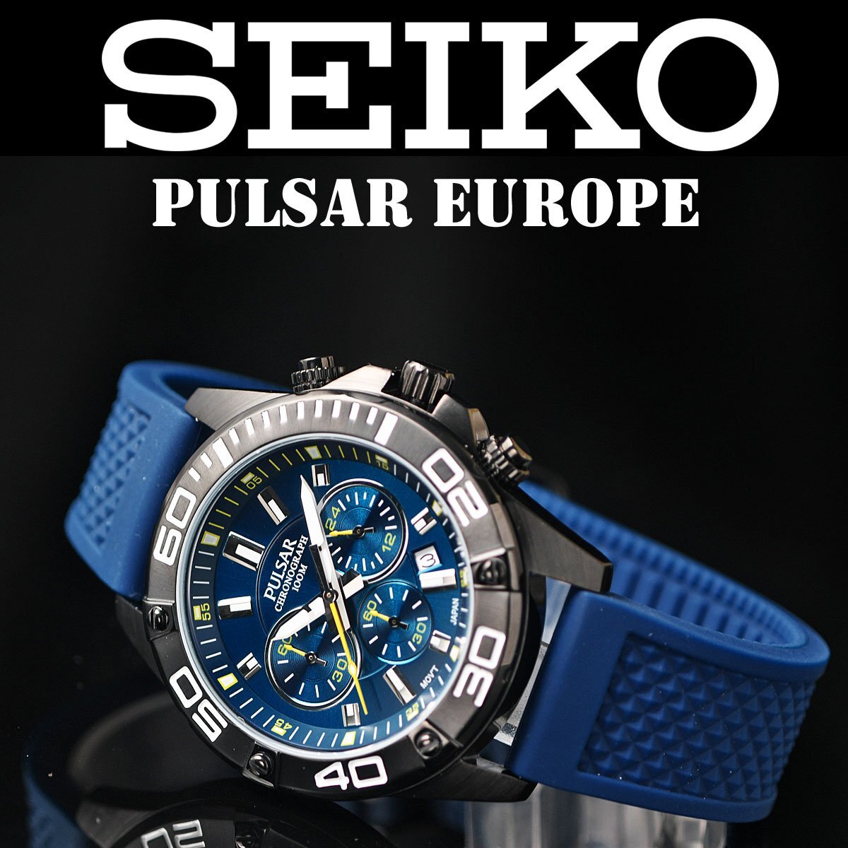 入手不可能セイコーPULSAR 新品1円 逆輸入 激レア日本未発売 クロノグラフ 100m防水 サファイアブルー 腕時計 メンズ 欧州モデル