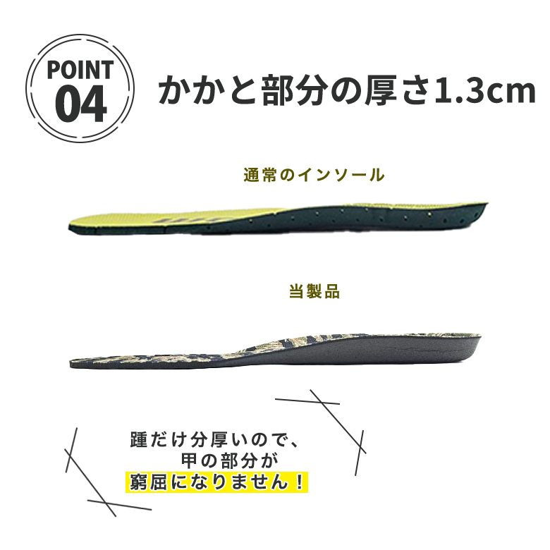 かかとの厚み最高1.3cmの極厚クッションで疲労軽減!