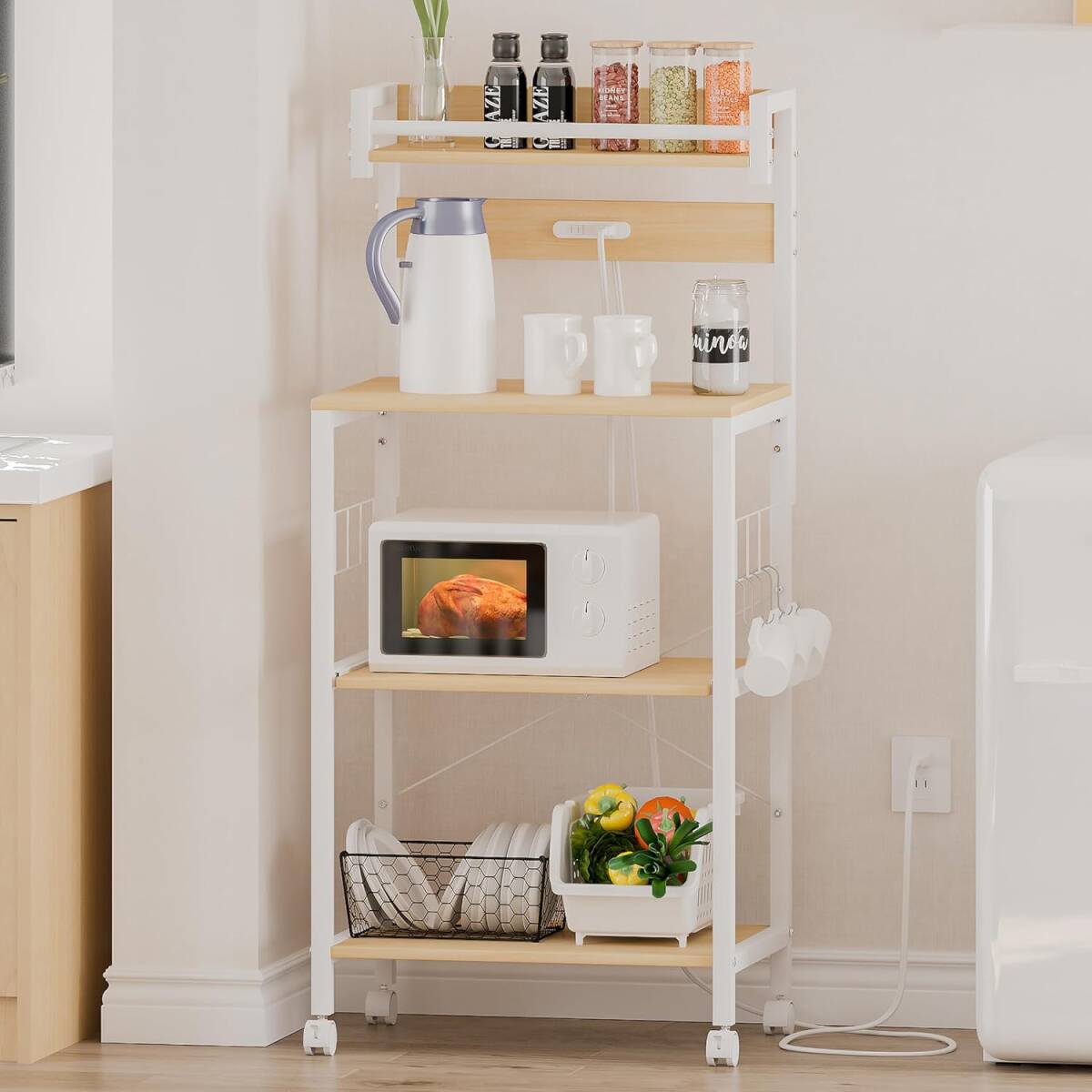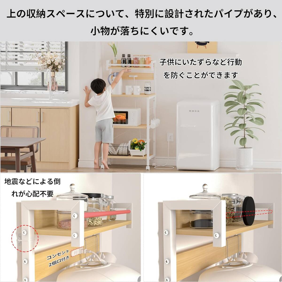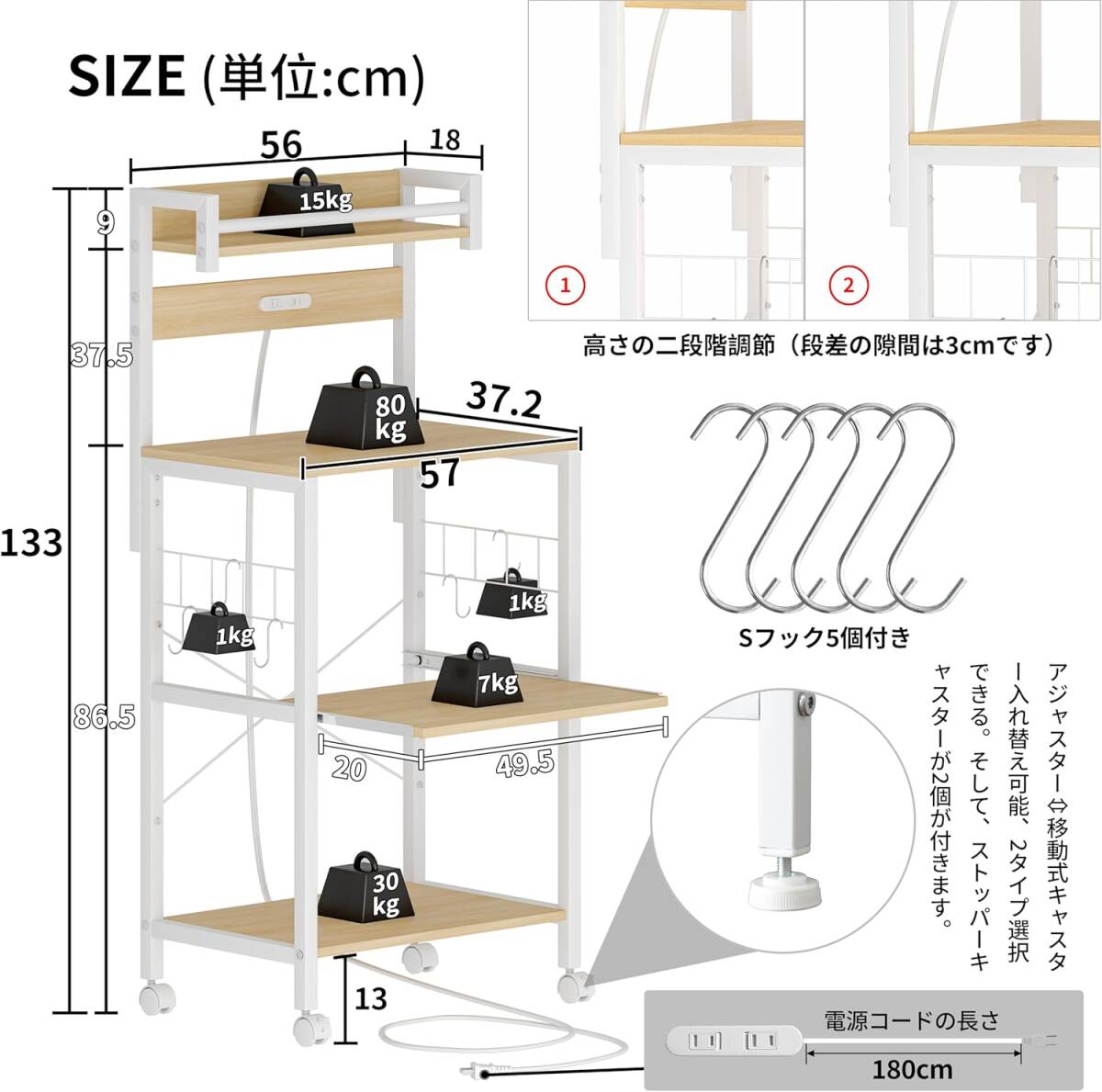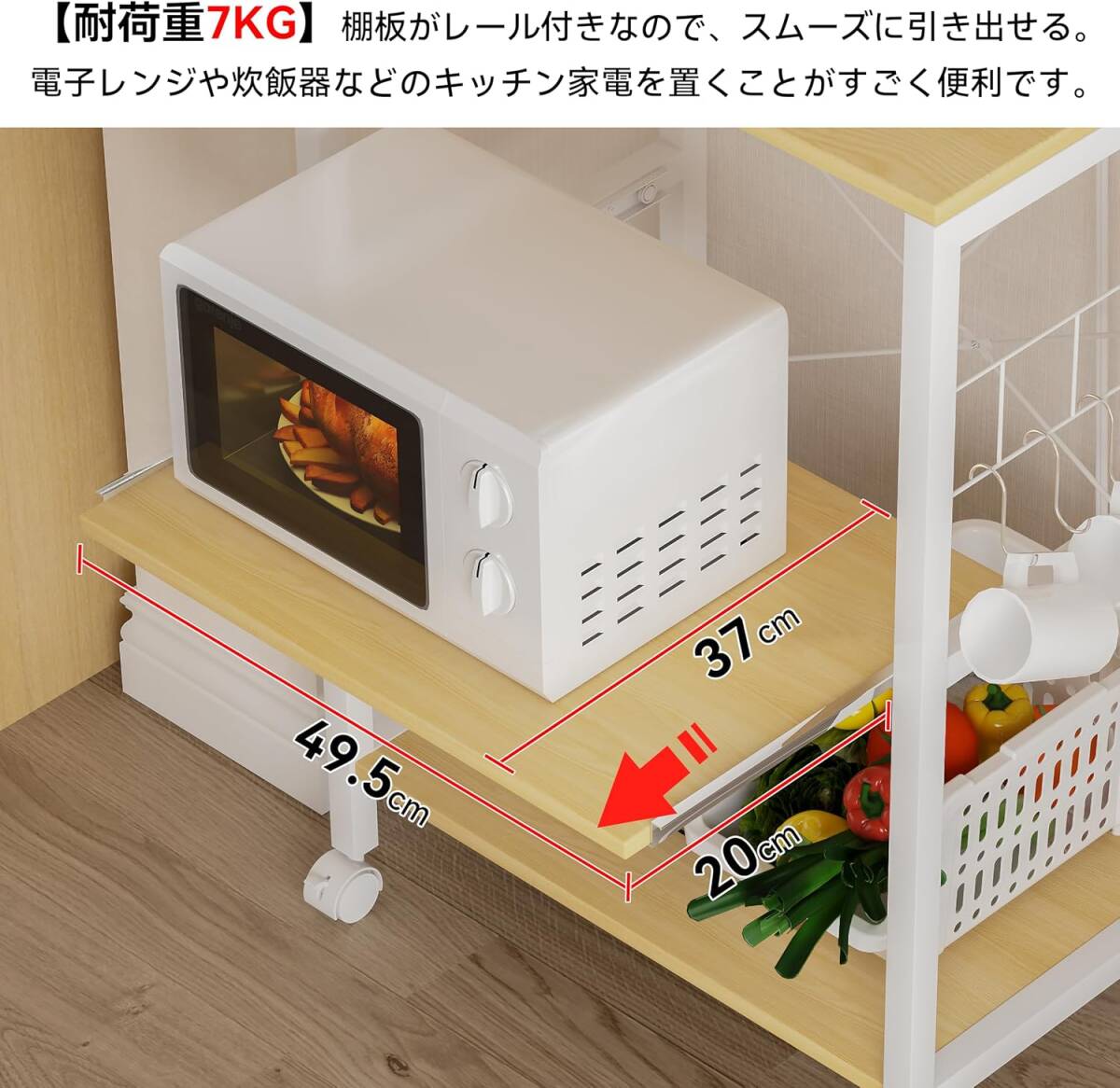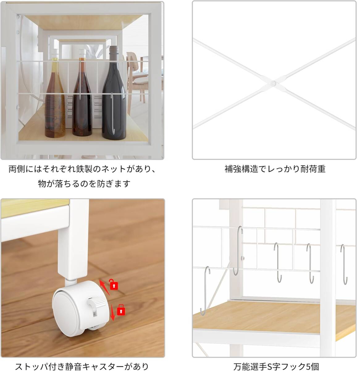 ナチュラル色 欲しいものがいつも手の届く場所に キッチンベイカーラック 幅57×奥行39.2×高さ133cm キッチンラック レンジ