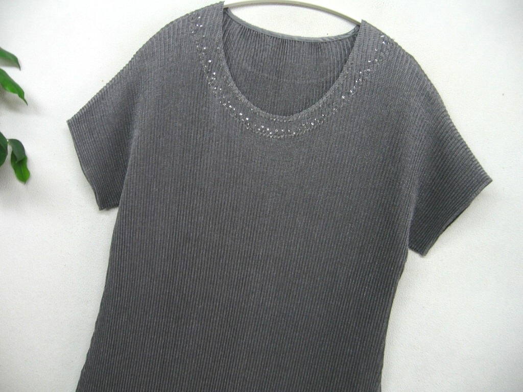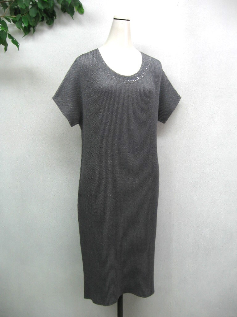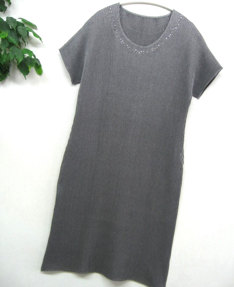 SPECCHIO PLEATS スペッチオ プリーツ ★ 大人のシャトルプリーツワンピース 40 ビーズ スパンコール付き グレー系